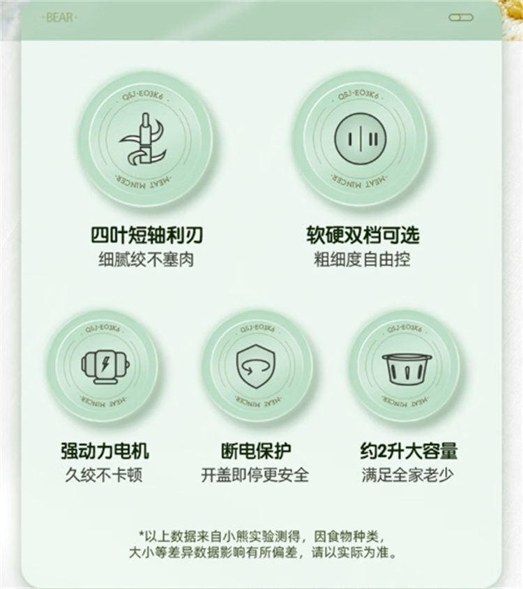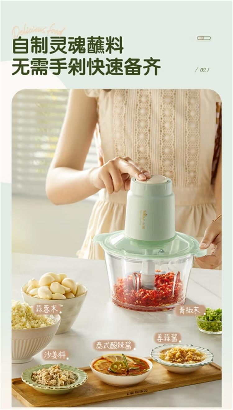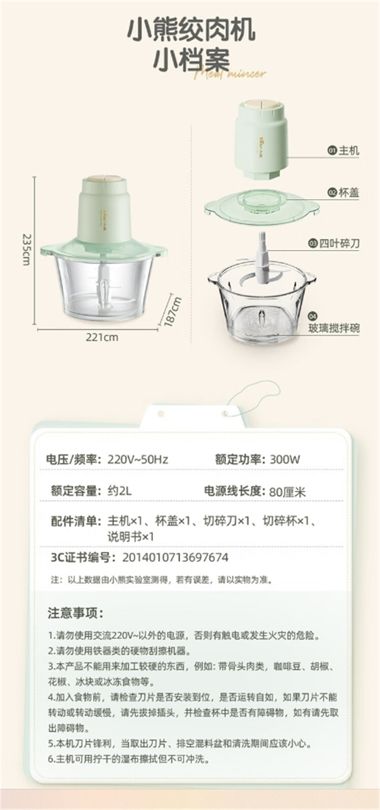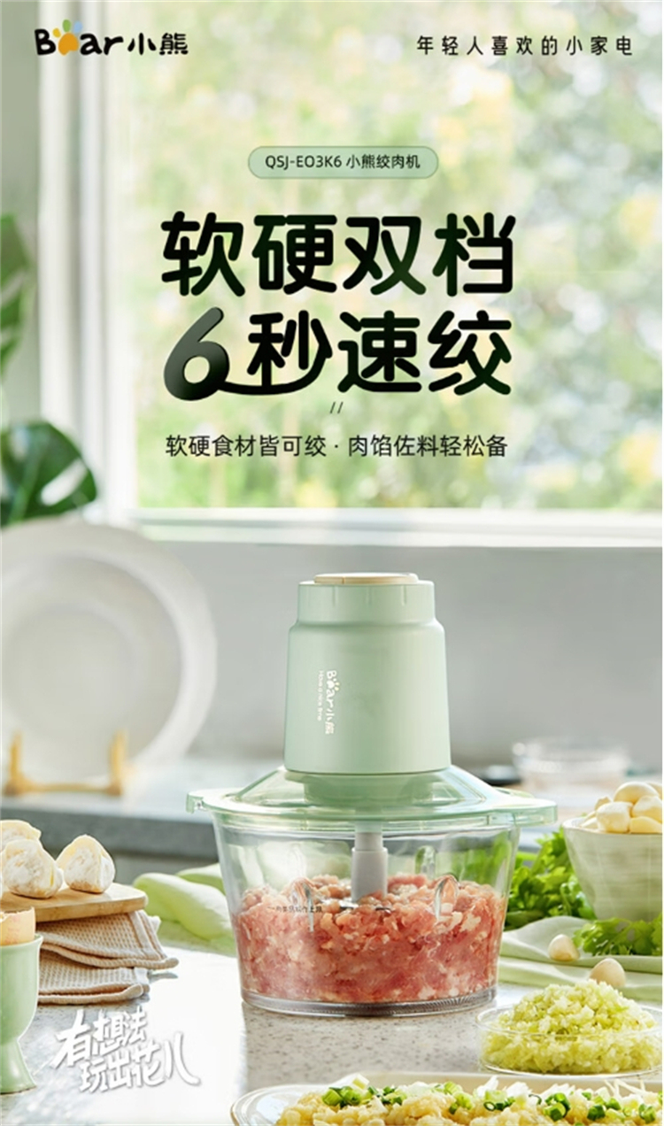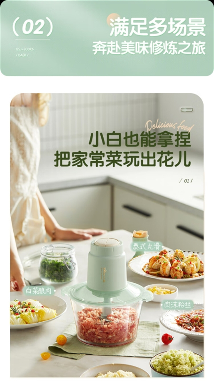 小熊(bear) 2L家用切碎机绞肉机 QSJ-E03K6