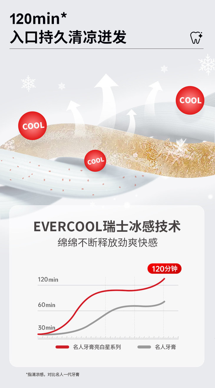 🔺加上采用evercool瑞士冰感科技,120分钟特效清凉! 夏天别再靠喝冰饮了,劲凉牙膏宝藏给你们准备好了, 这些凉感珠珠爆发,用完感觉像装了空调, 持续在吹凉风,都没那么燥热了, 还带着玫瑰花香嘴巴再也不滂臭了👍