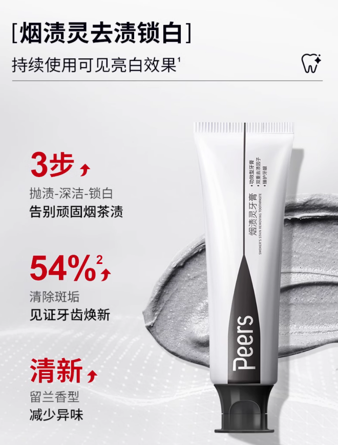 三重去渍因子简直是烟渍克星!! 一种像纳米级小刷子,能钻进牙齿的每一道缝隙,把沉积多年的顽固烟渍一点点瓦解; 另一种就像给牙齿穿上防护衣,刷完牙后在表面形成保护膜,就算接着抽几根烟,新的烟渍也不容易附着! 老爸坚持用了半个月,牙齿边缘的黄渍明显变淡;用到一个月,连牙缝里的陈年烟垢都少了大半👍