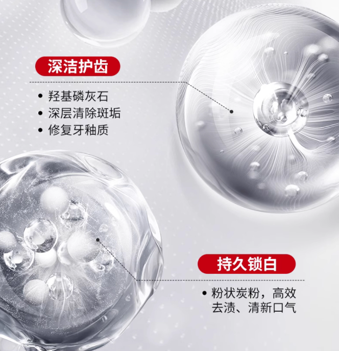 重点夸夸它的去渍能力!! ✅特含牙膏中的“烟酰胺”成分-植酸纳+“牙渍橡皮擦”焦磷酸四钠黄金搭配 高效分解牙齿表面的牙渍,更有效发挥美白作用。 ✅添加聚乙烯吡略烧酮高分子聚合物 与牙渍形成化学络合作用,去除污渍,达到美白效果。与功效成分(如植酸钠)复配使用, 深层清除斑垢,减少牙结石沉积。 ✅添加天然炭粉和天然矿物质沸石, 碳粉能清除牙齿表面污垢和牙 菌斑,保持口气清新;矿物质沸石能吸附异味物质,抗菌并抑制细菌繁殖,维护口腔健康。