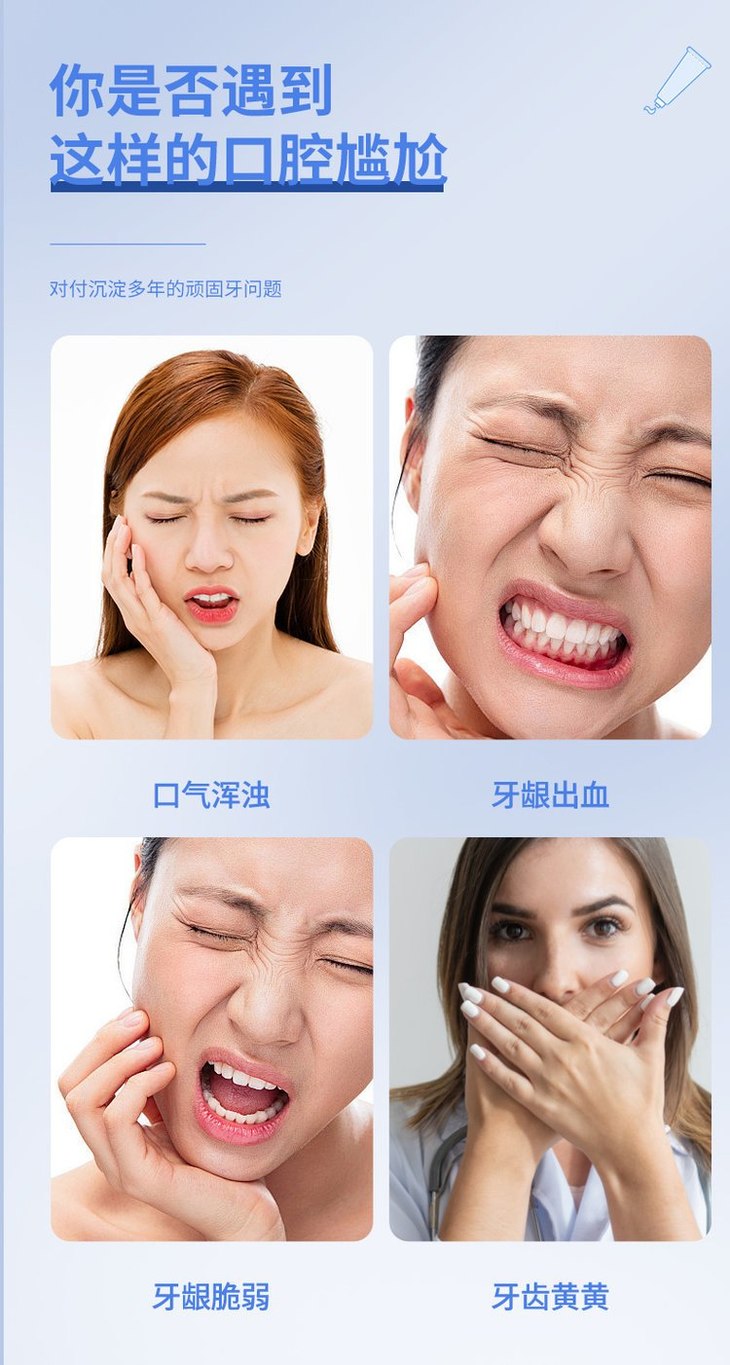 👏针对各种牙黄、牙渍、口腔溃疡、牙龈出血等问题 ✅名人牙膏一共推出了3款不同功效型的牙膏!!