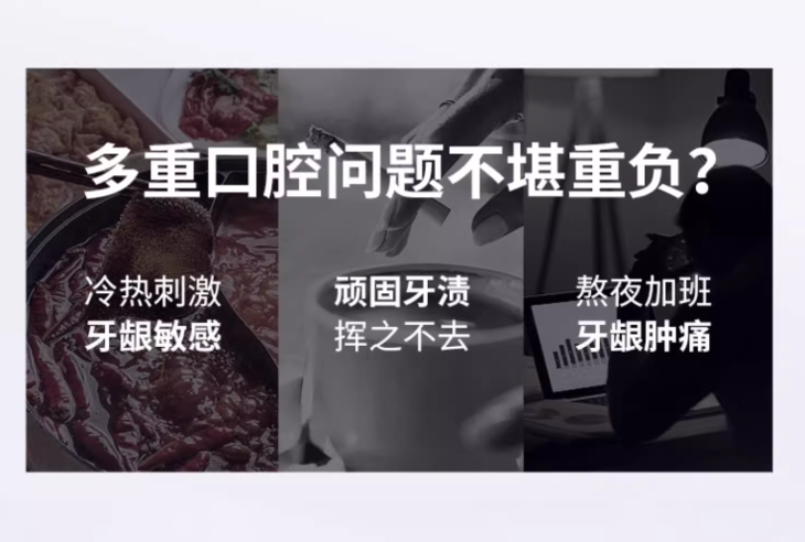 全国口腔健康流行病学调查显示,97%的成年人有一定程度的口腔问题 食物残渣堆积、口腔细菌滋生导致的牙垢、牙菌斑、龋齿。一开始只是牙缝长黑斑,慢慢地扩大成蛀洞,动不动半边脸都抽疼,酸的、冷的、热的,都不能吃。 牙菌斑、牙垢增多,慢慢演变成牙结石,扣一块下来,巨臭无比🙃不信你试试,别怪我没提醒你