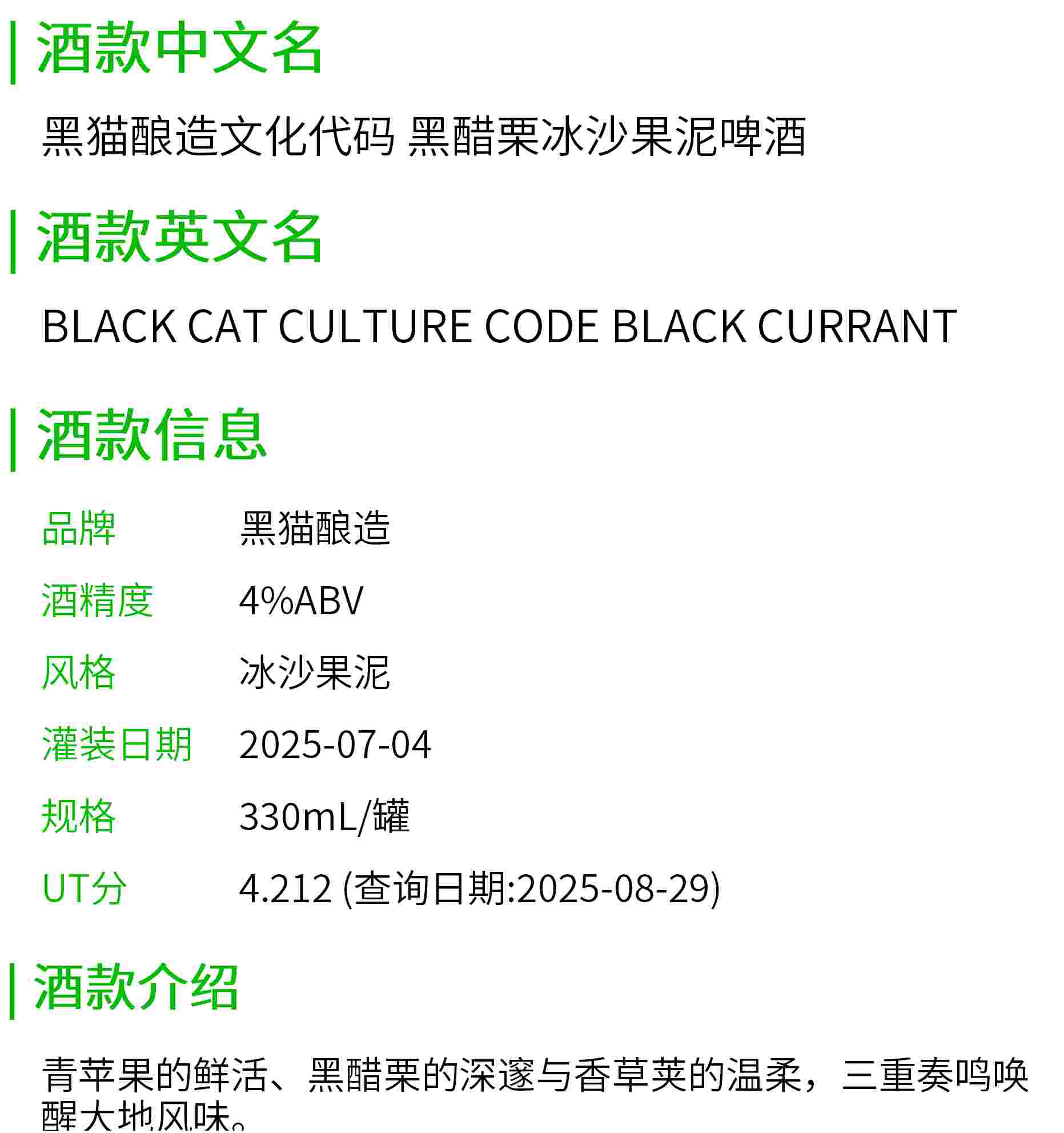 黑猫酿造文化代码 黑醋栗冰沙果泥啤酒