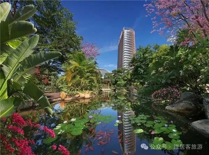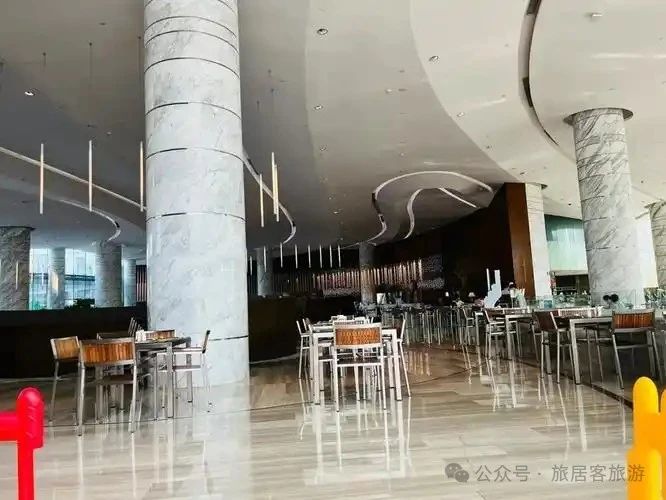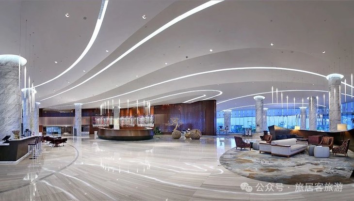 步入酒店,远远便能望见其独特造型,吸睛夺目。这座酒店由享誉国际的美国 NBBJ 建筑设计事务所精心打造 ,整体外观仿若轻盈舒展、优雅绽放的 “水仙花瓣”,独具韵致。
