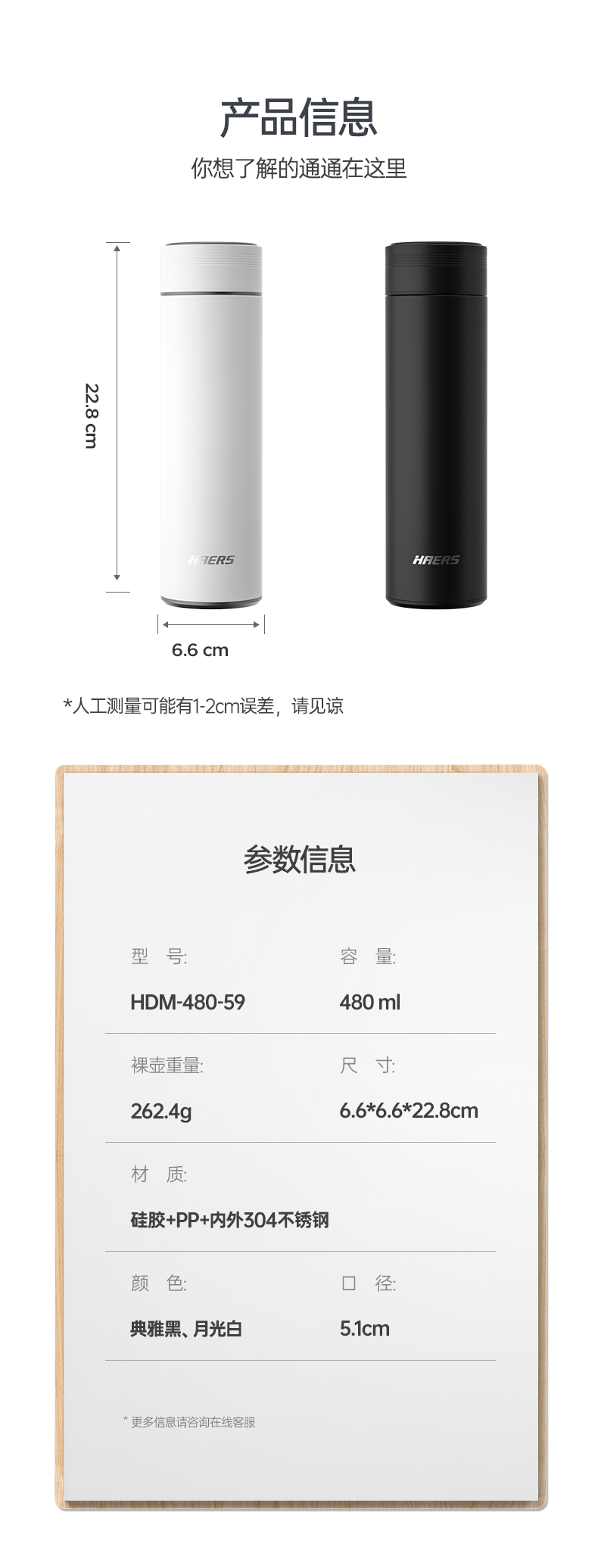 哈尔斯商务温显保温杯 HDM-480-59