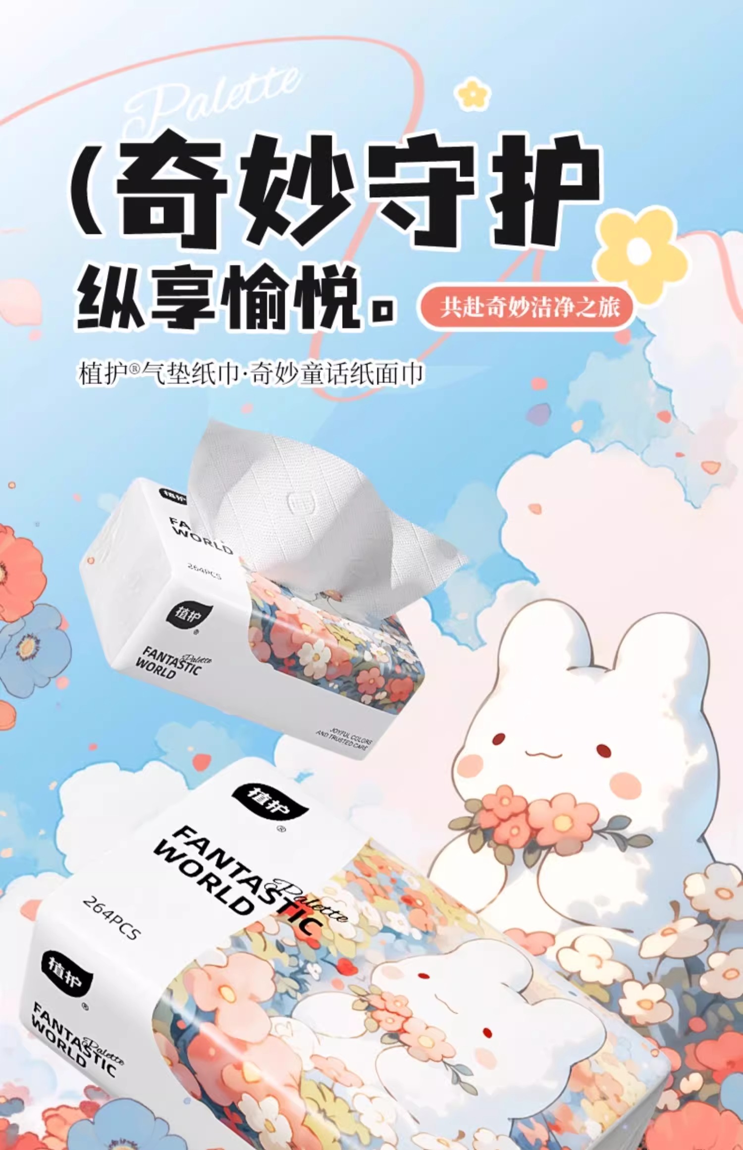 植护气垫纸面巾奇妙童话10包1袋快递袋装