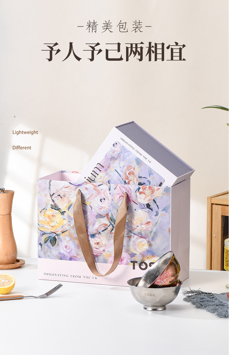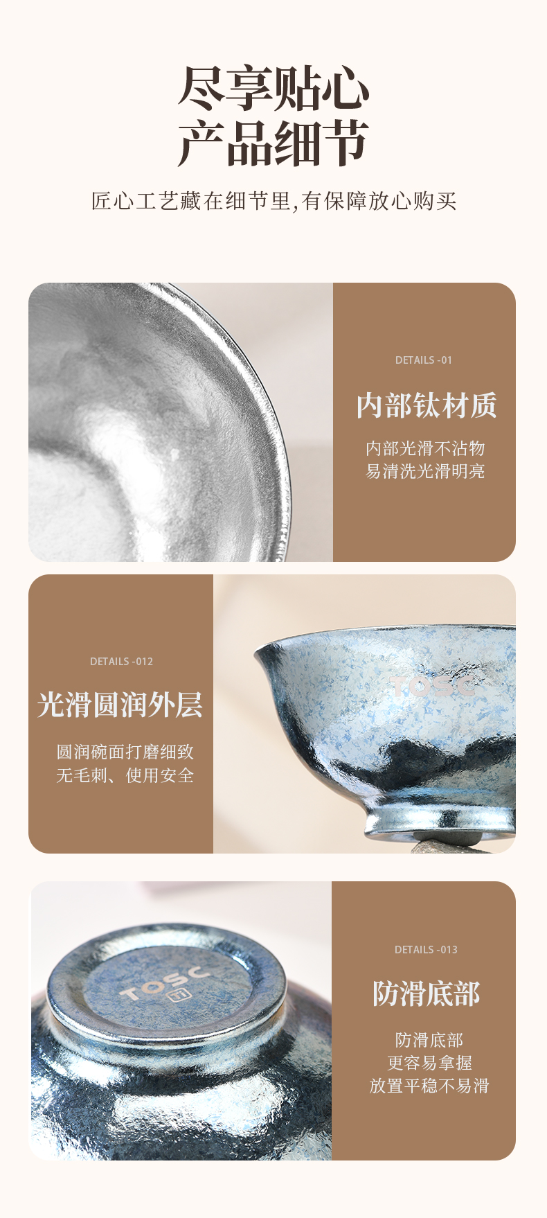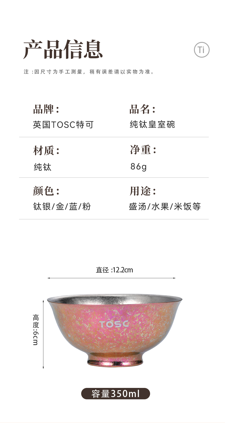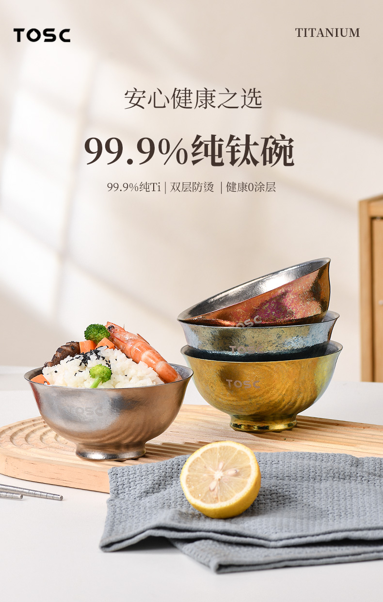 【优选专享】英国TOSC特可纯钛碗皇室碗组合装家用双层防烫汤碗餐具350ML