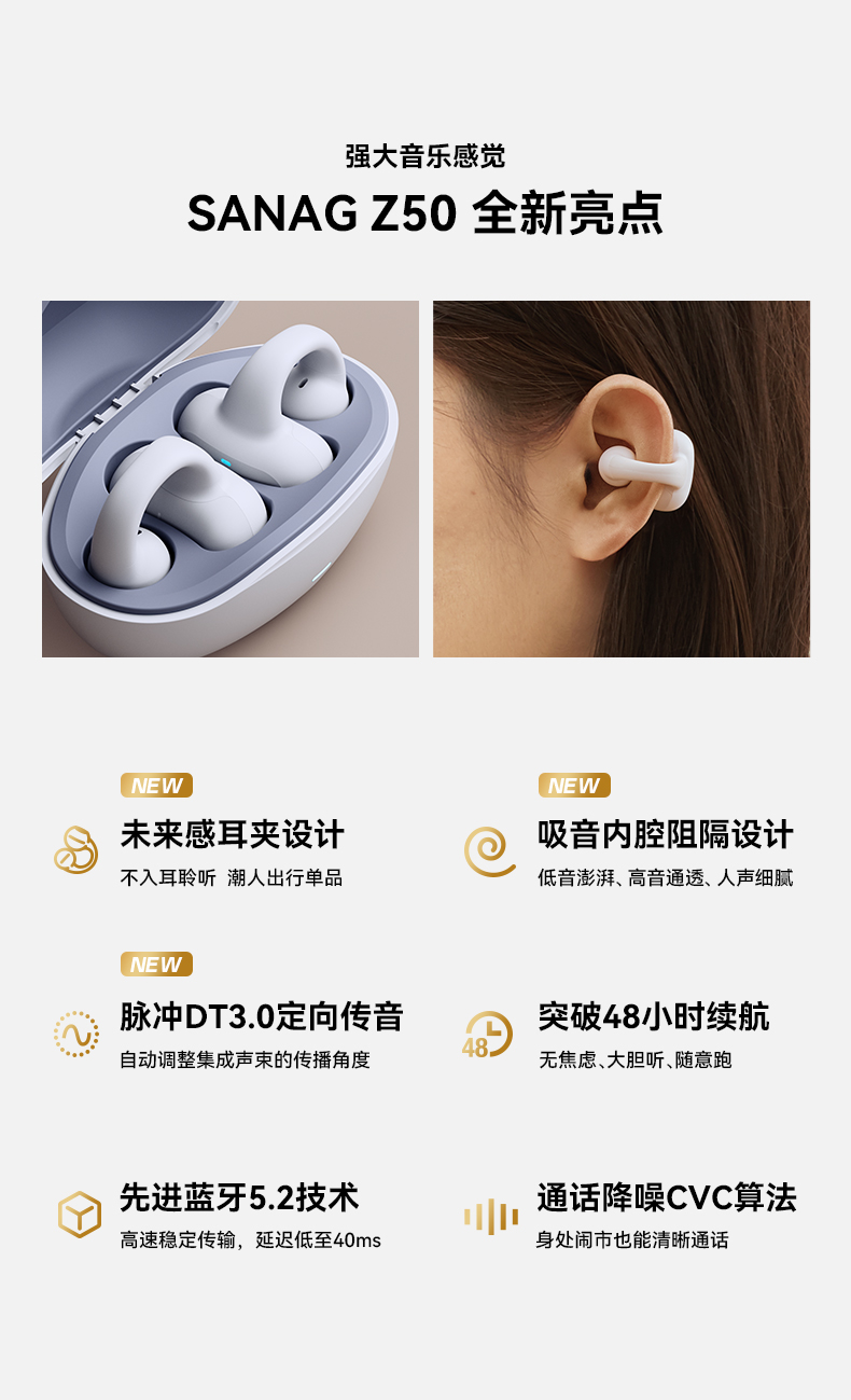 Sanag塞那新概念无线夹耳蓝牙耳机Z50SPro