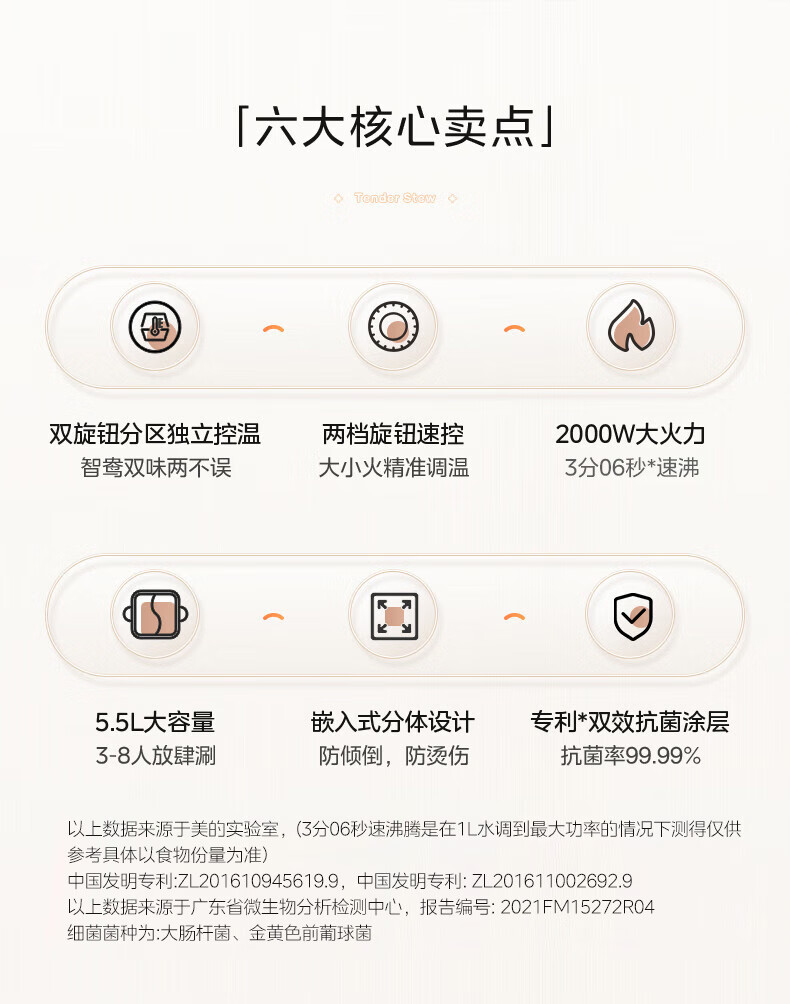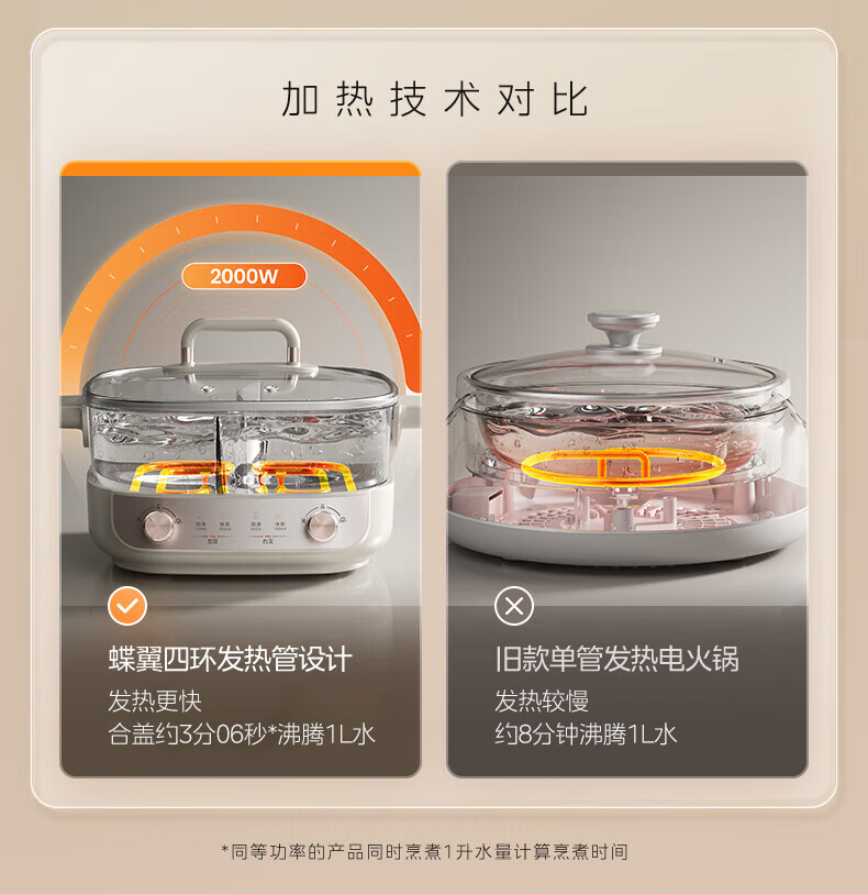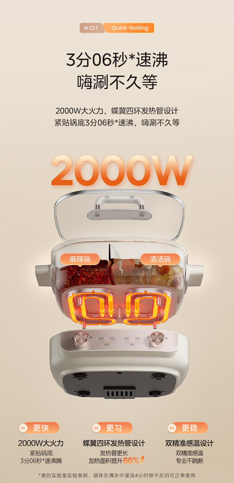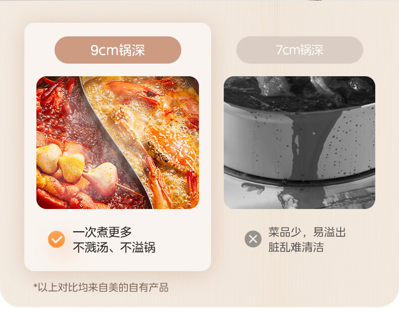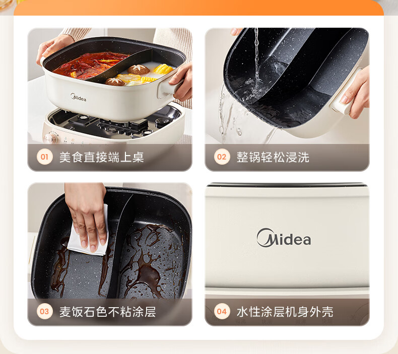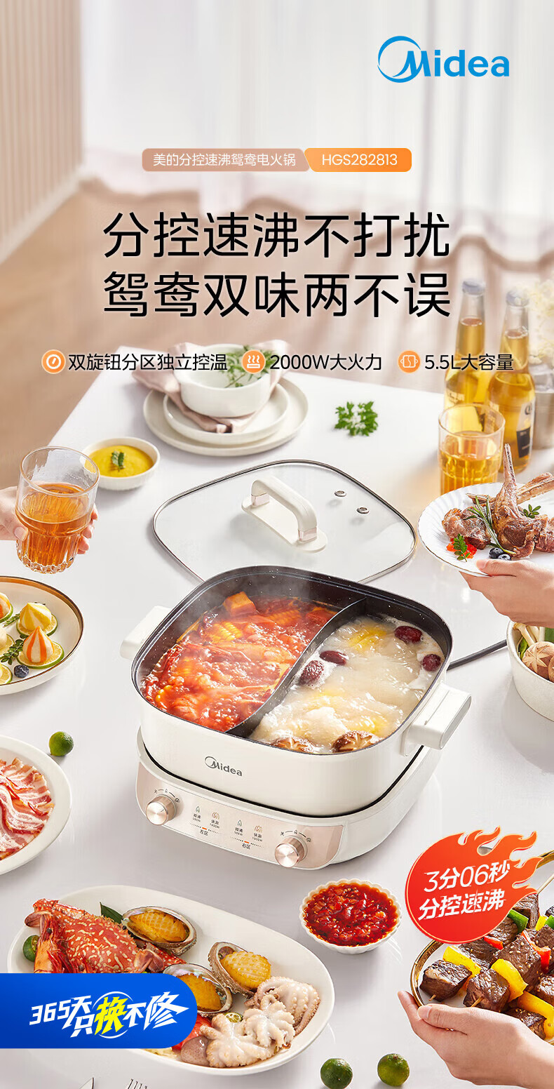美的(Midea)火锅专用锅 电火锅鸳鸯锅电煮锅 3分06秒速沸5.5L 分体多功能锅火锅锅多用途锅HGS282813