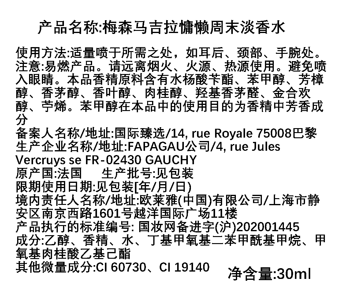 Maison Margiela梅森马吉拉 慵懒周末香水