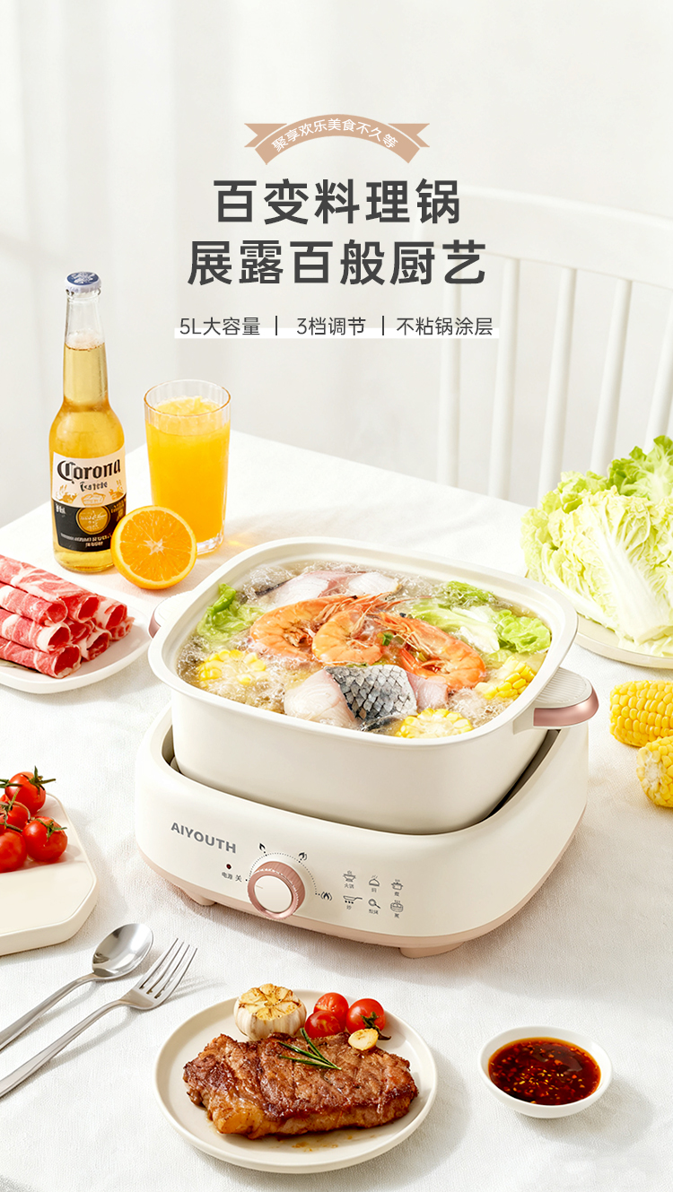 AIYOUTH艾青春 5L多功能分体电火锅AI-HG666