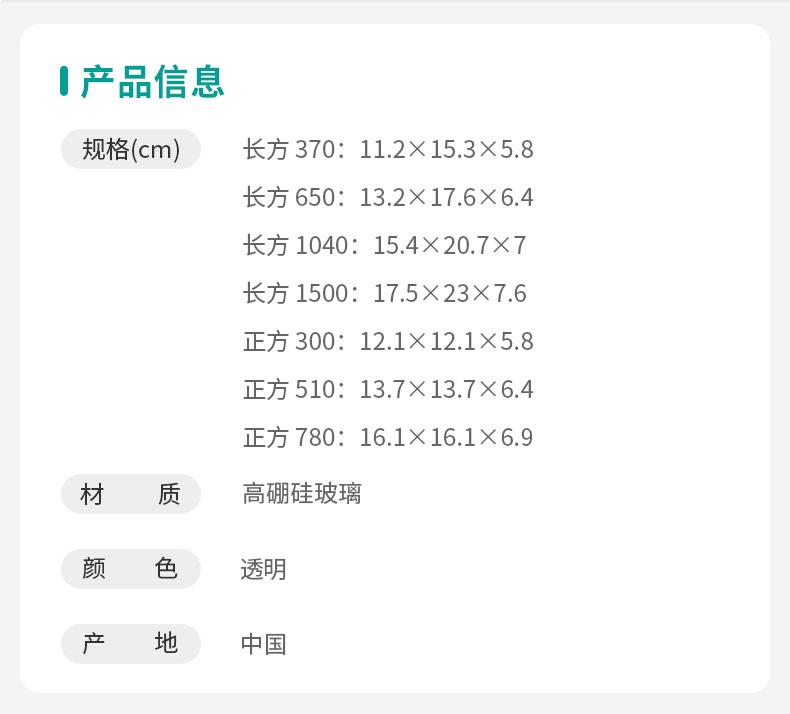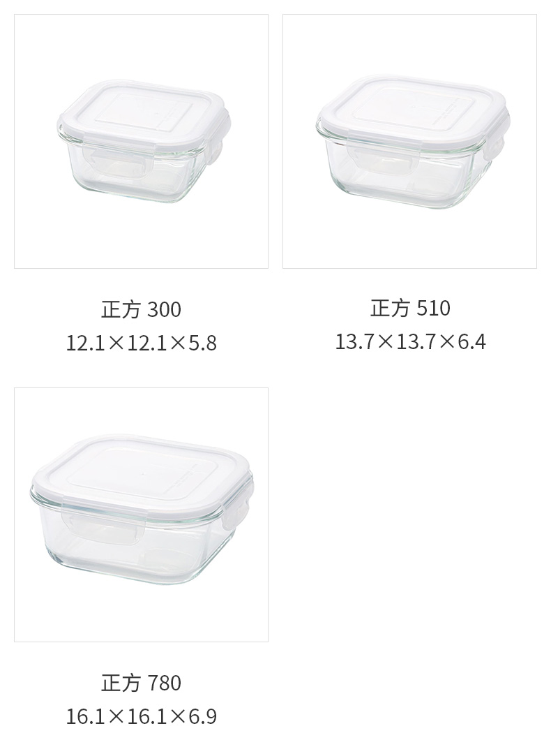 耐热玻璃保鲜盒N 正方形 约300ml/510ml/780ml