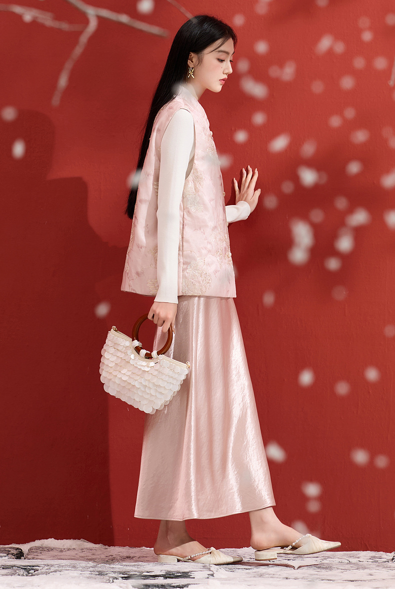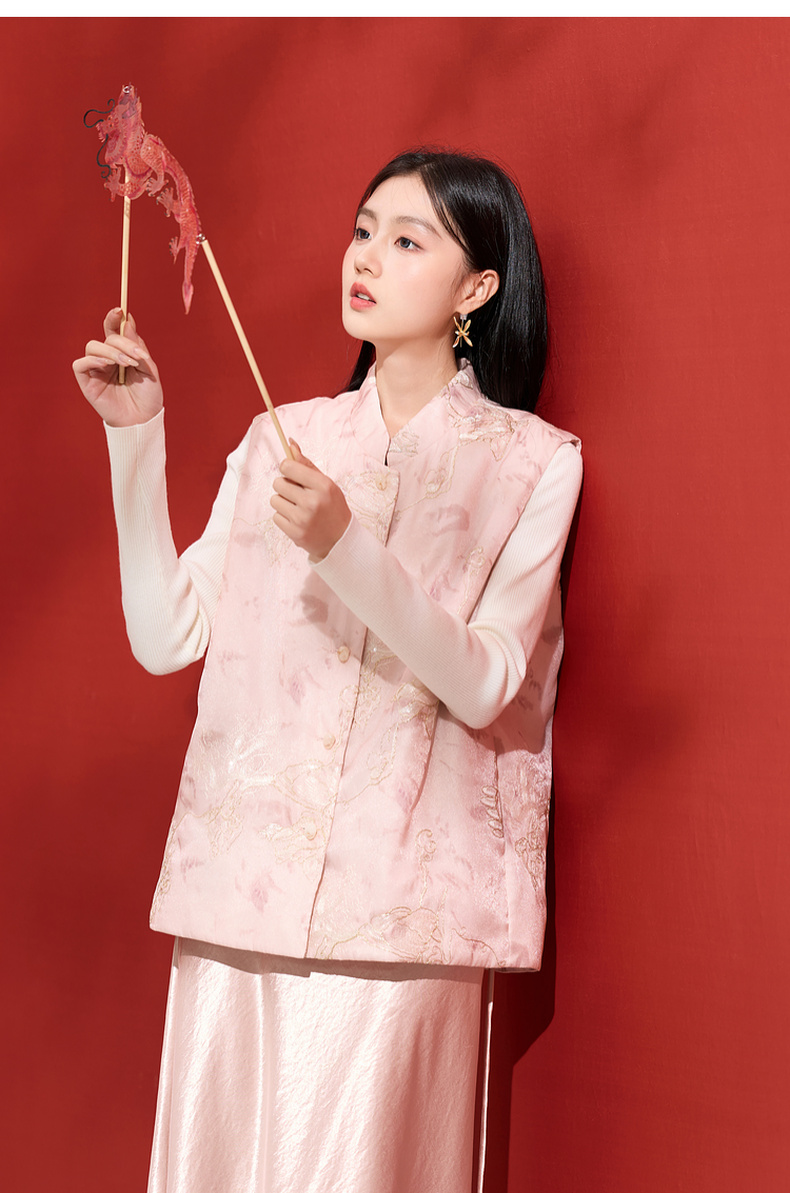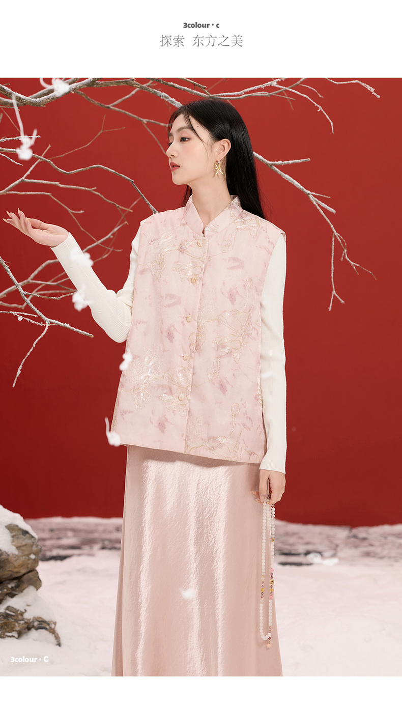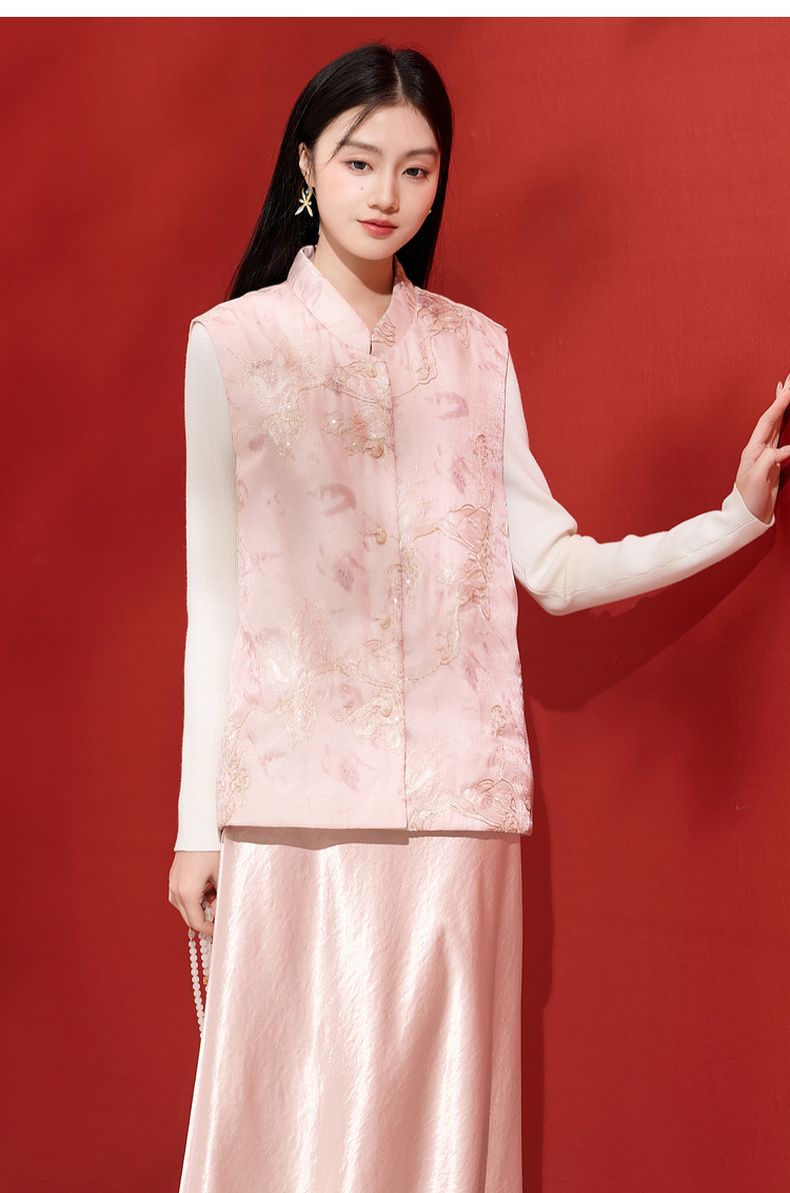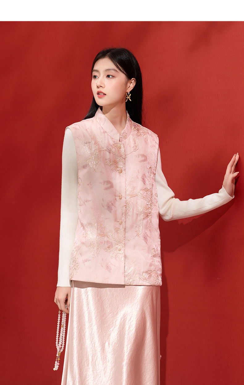 [宋轶同款]三彩【衔石填海】2025冬季新款绣花蓄热棉衣马甲立领无袖外套C