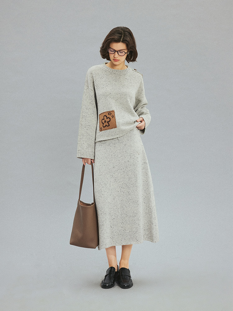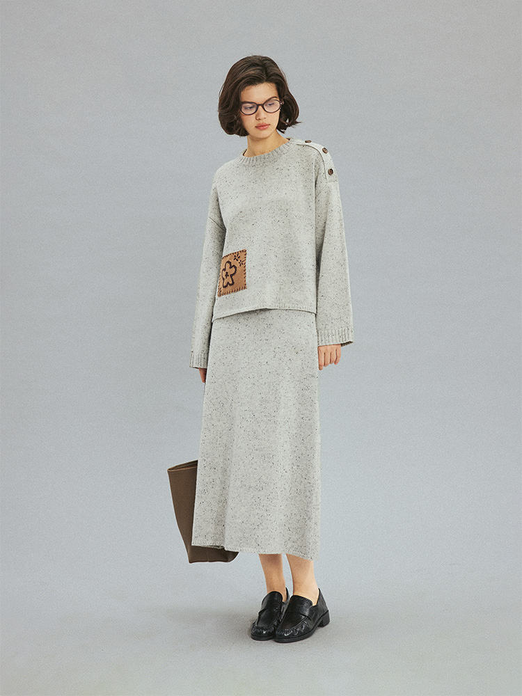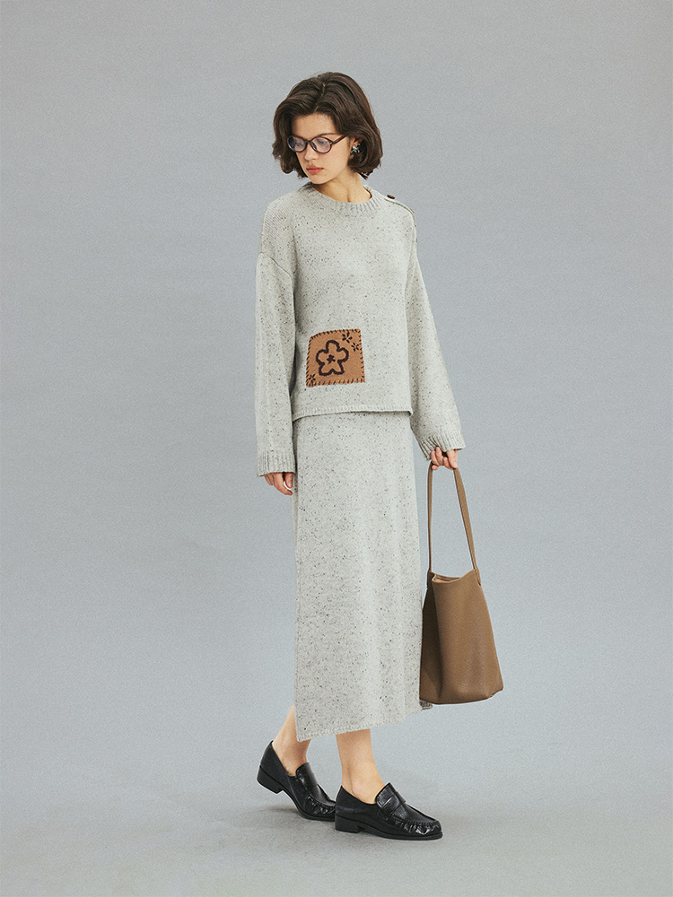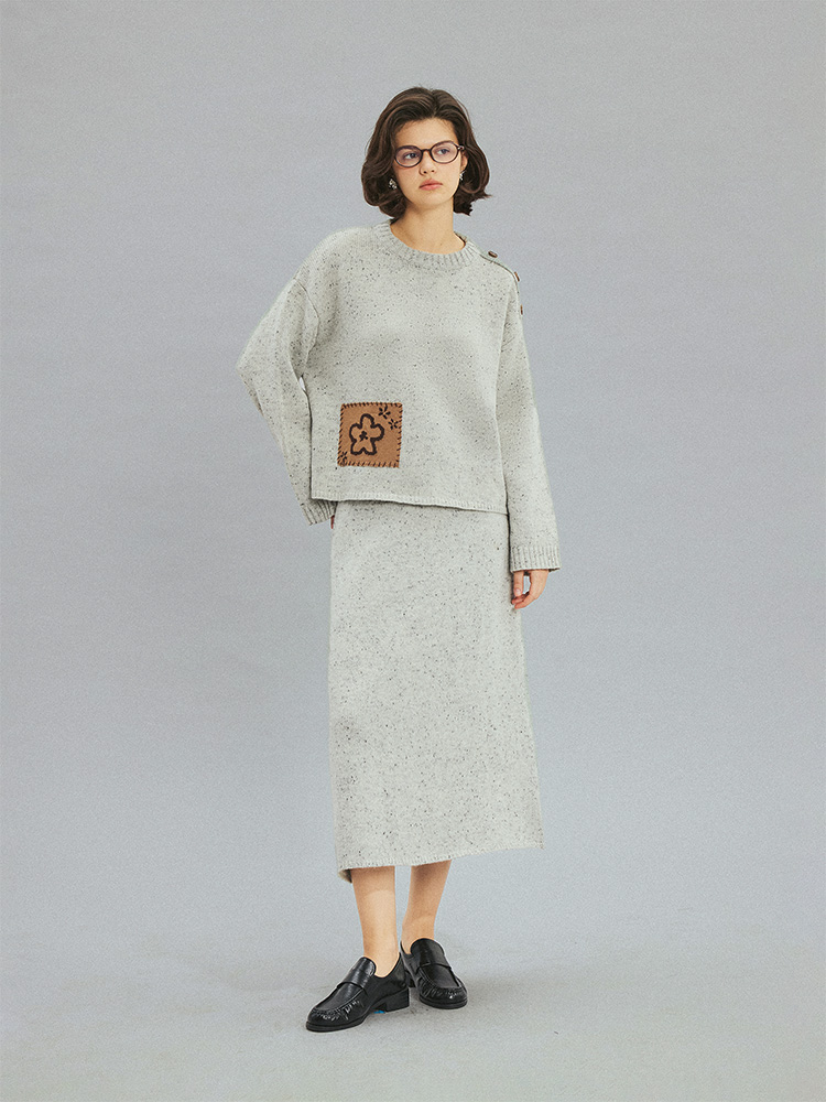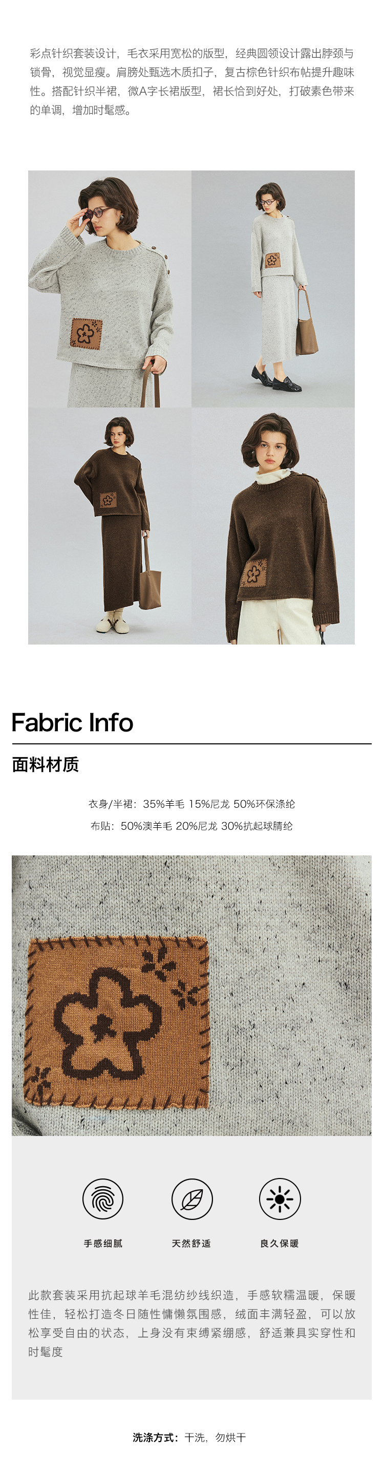 ForPoem 现货 24/FW原创设计贴布装饰羊毛彩点针织套装