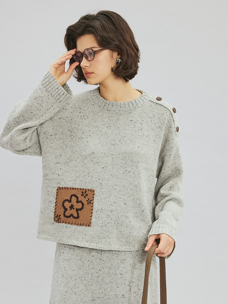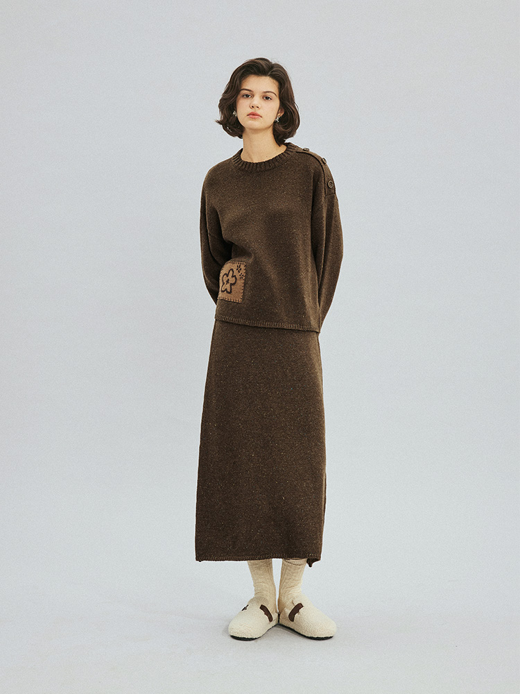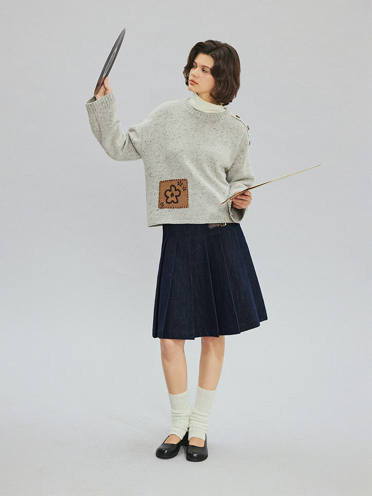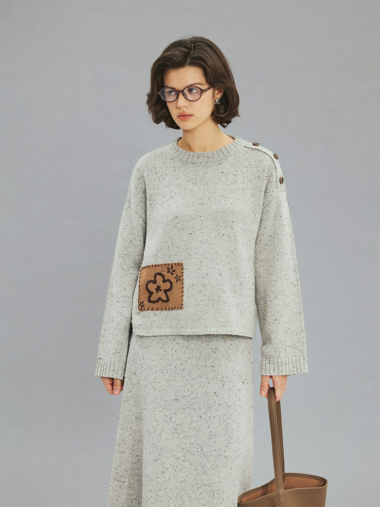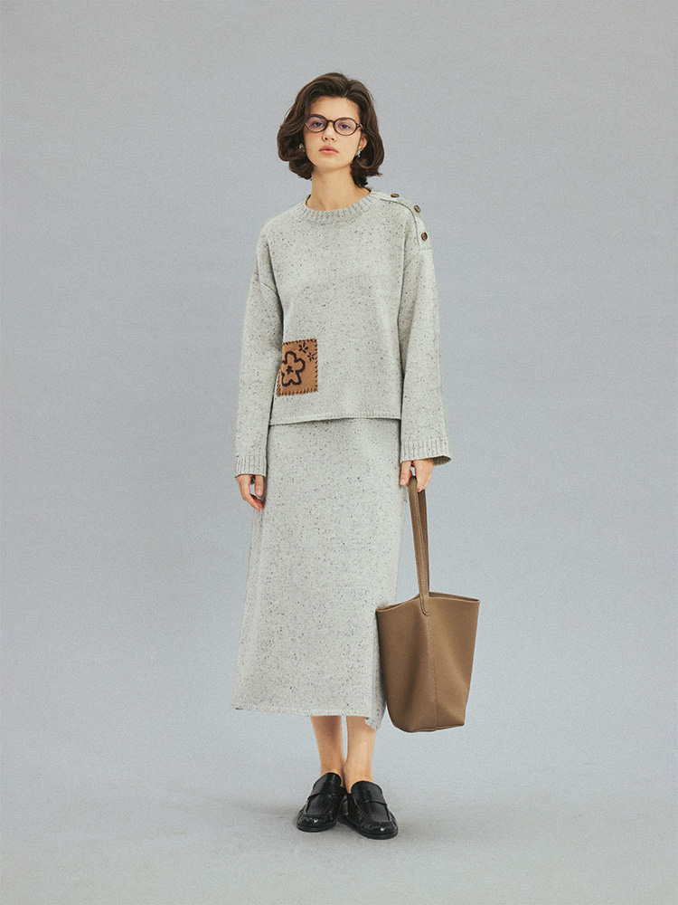ForPoem 现货 24/FW原创设计贴布装饰羊毛彩点针织套装