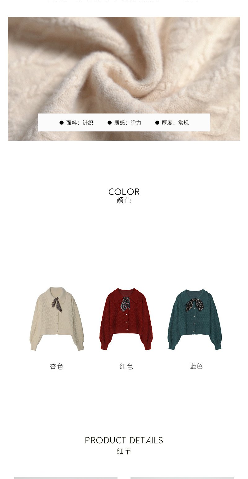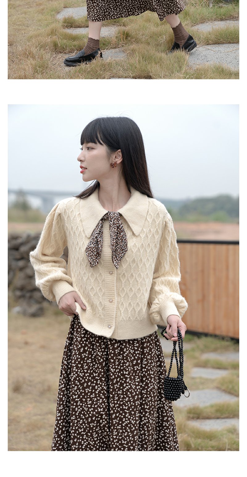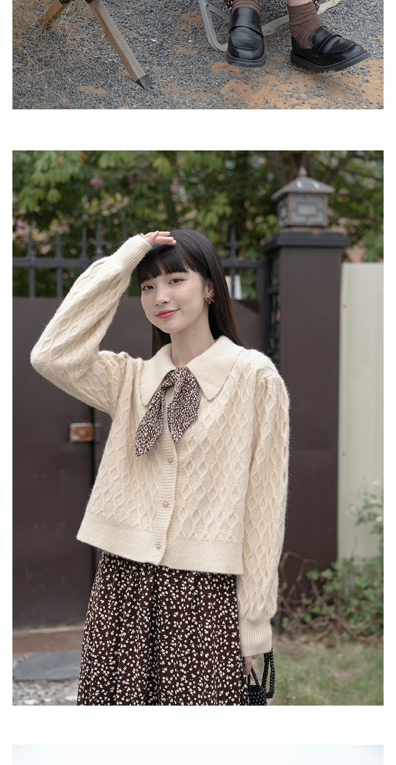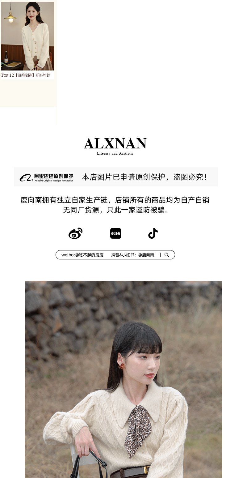鹿向南《杏仁咖啡》杏色毛衣外套2023款娃娃领针织衫设计感上衣女
