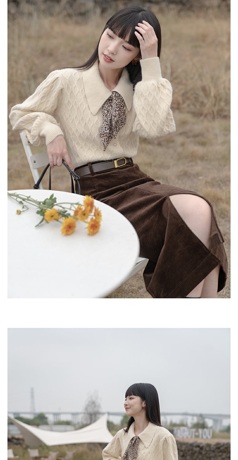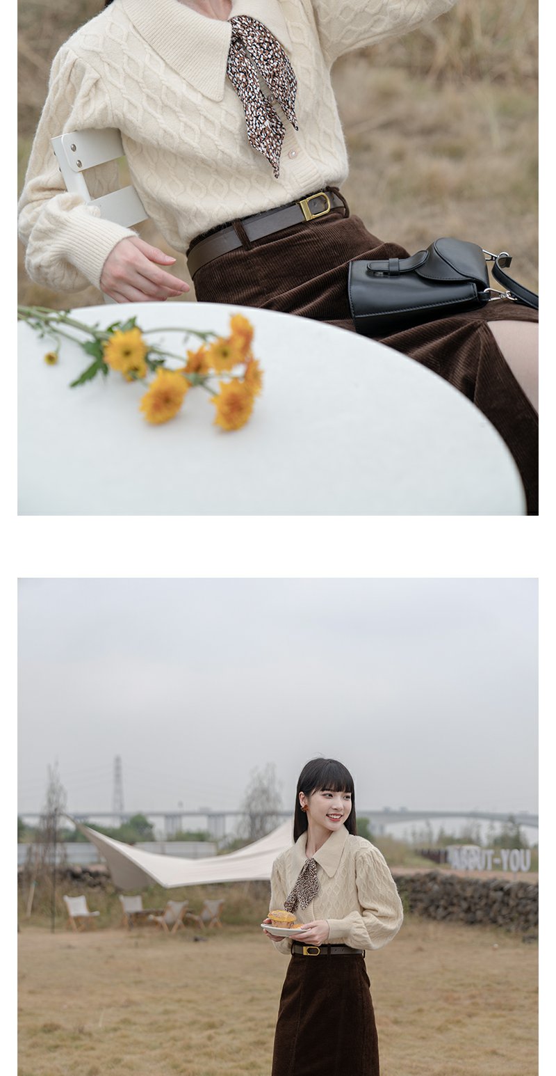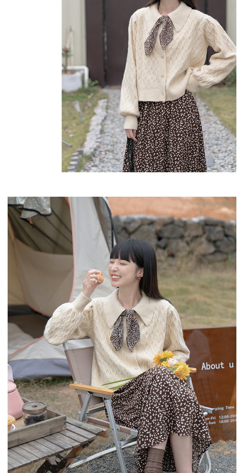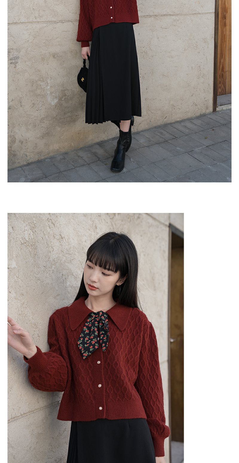 鹿向南《杏仁咖啡》杏色毛衣外套2023款娃娃领针织衫设计感上衣女