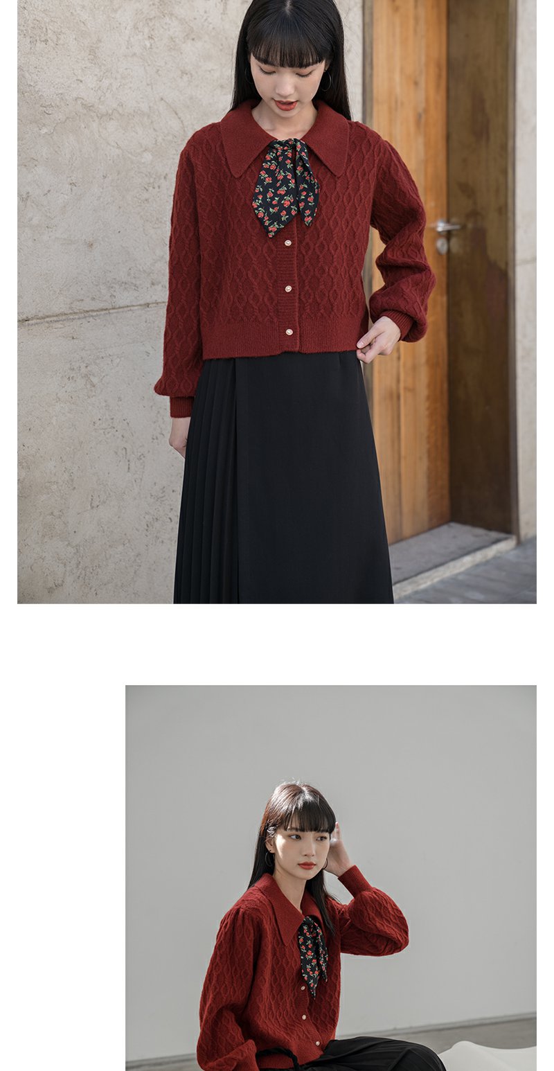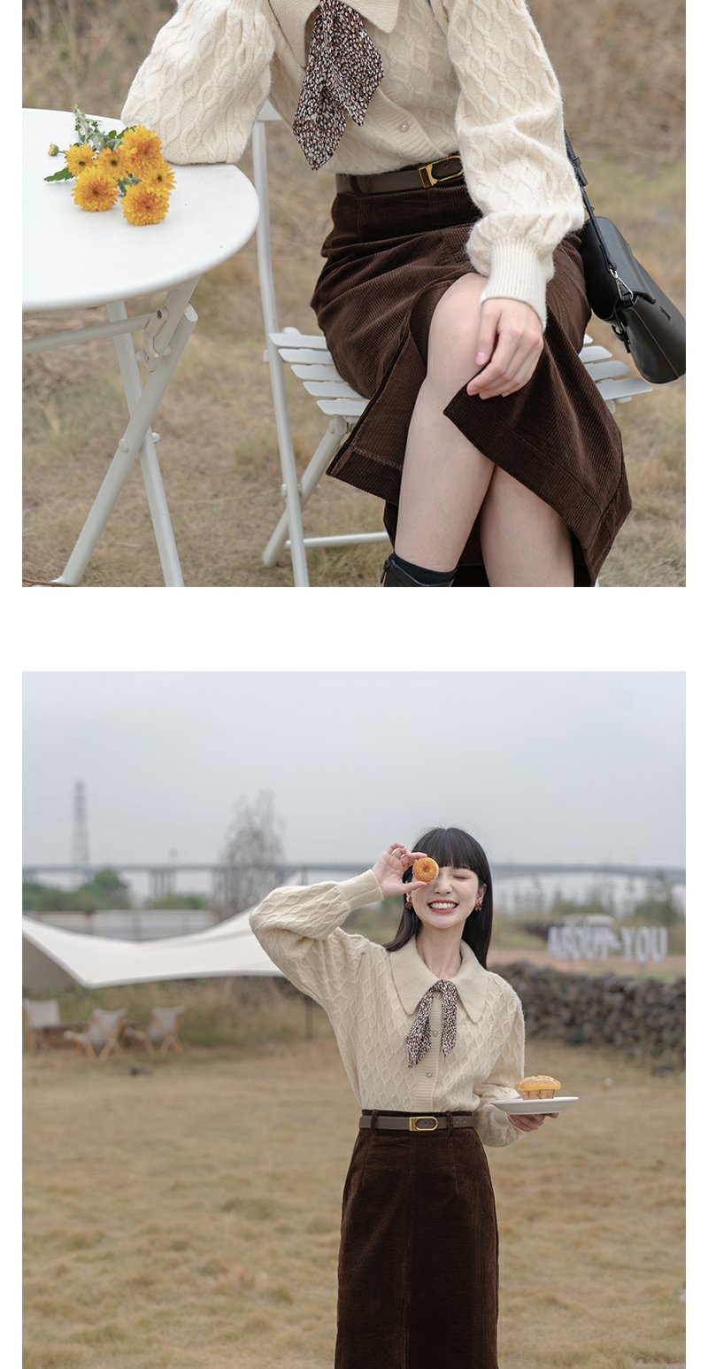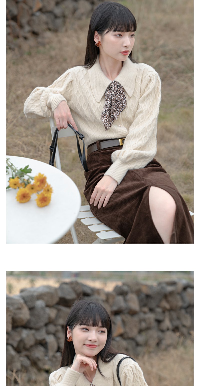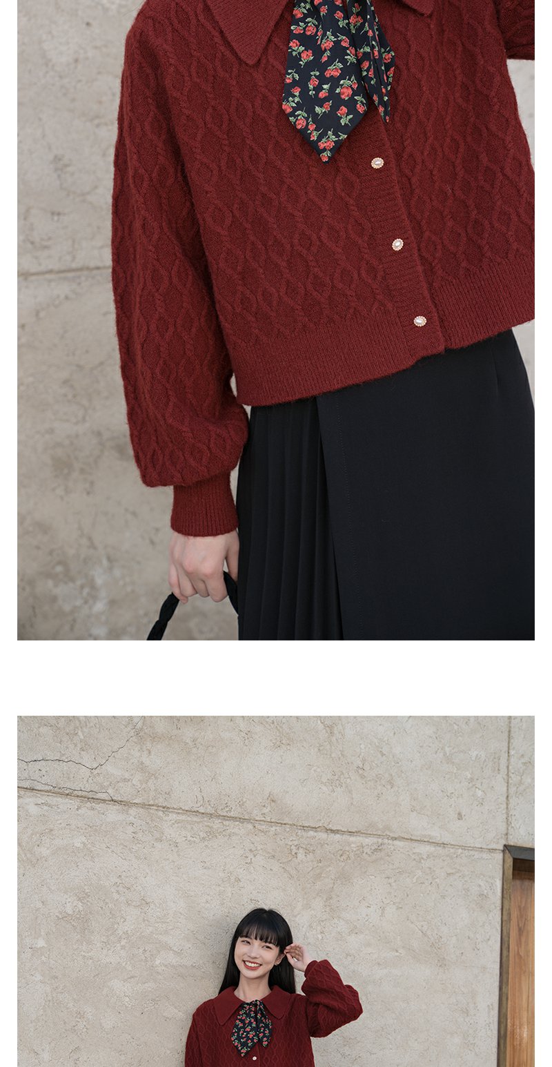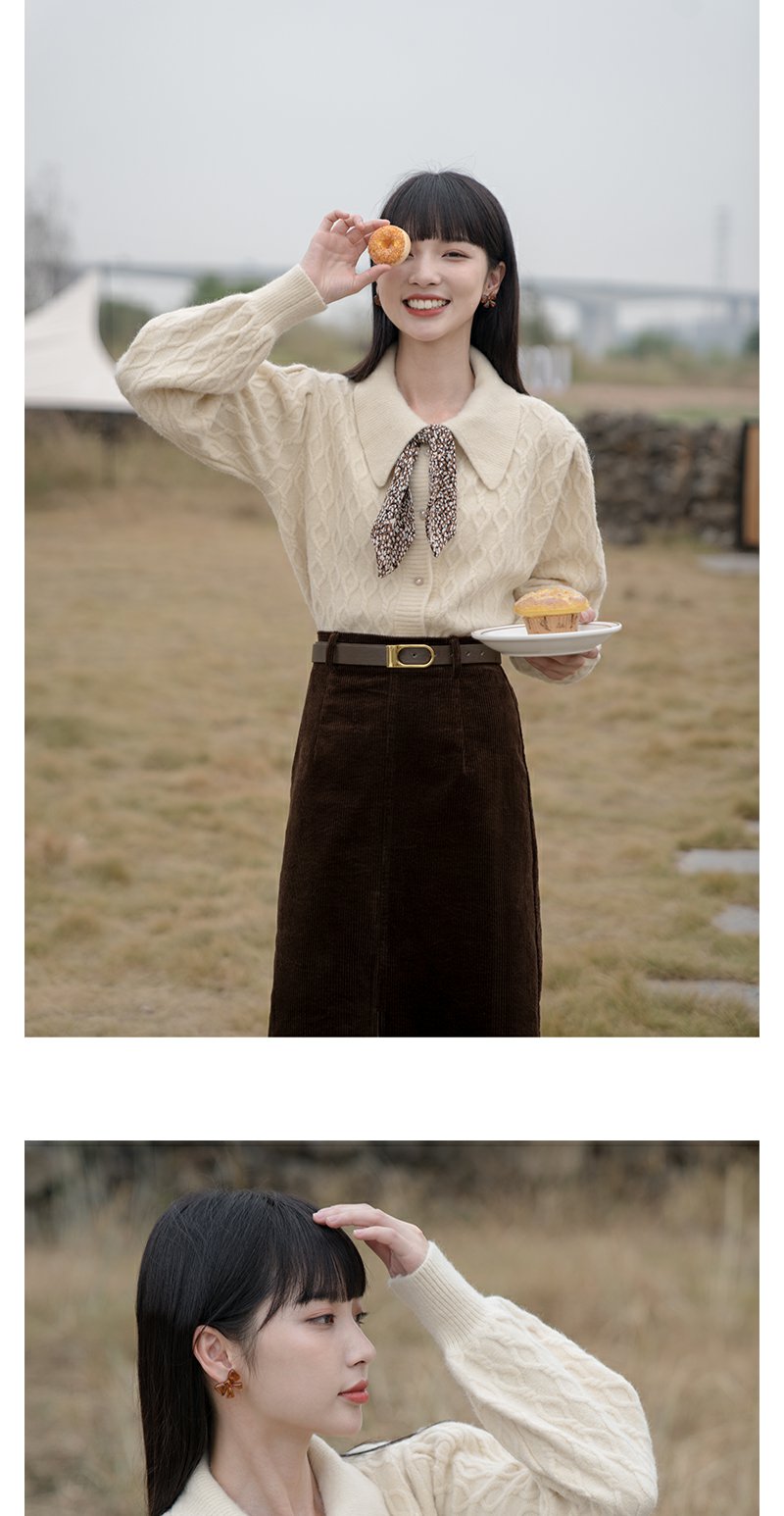 鹿向南《杏仁咖啡》杏色毛衣外套2023款娃娃领针织衫设计感上衣女