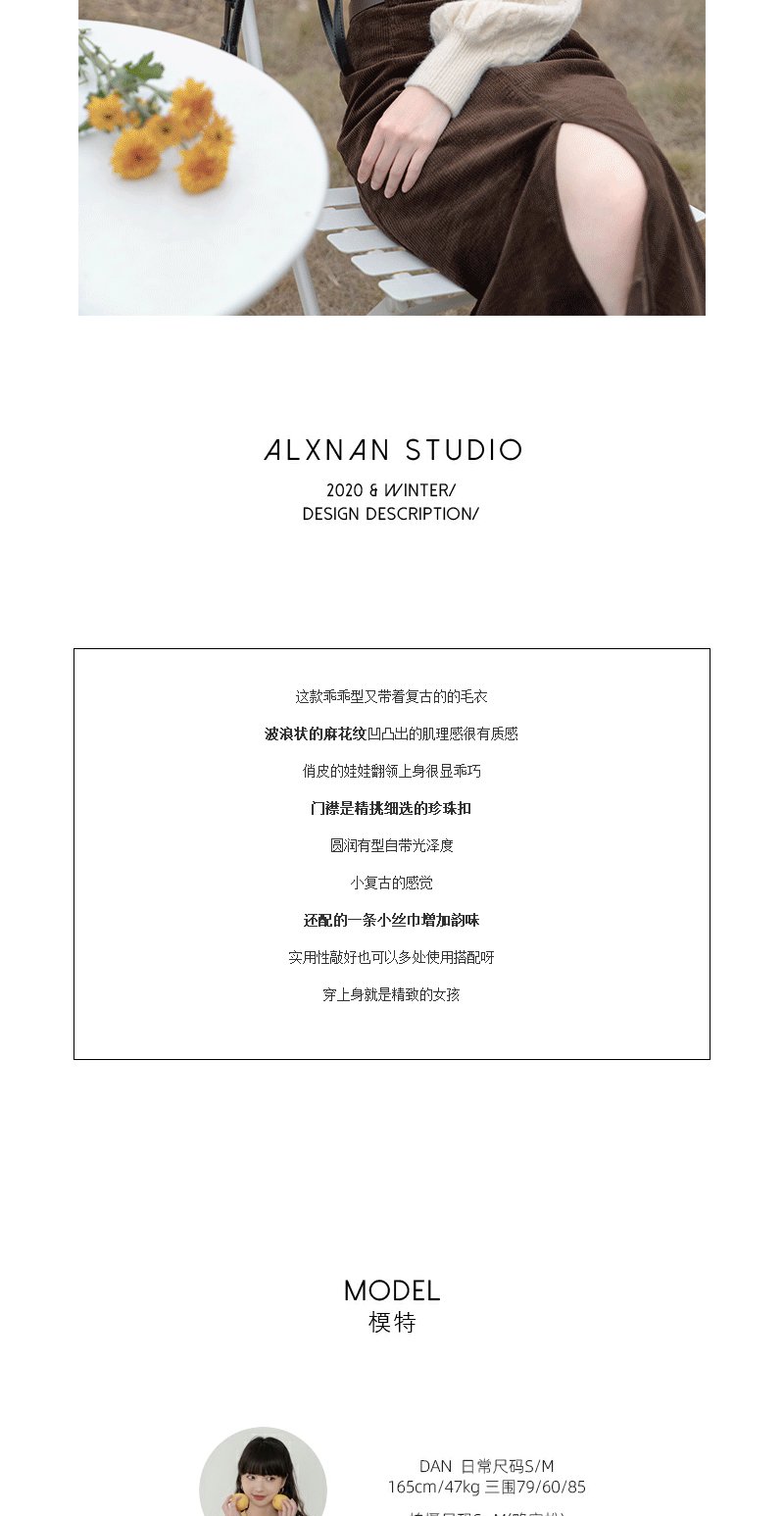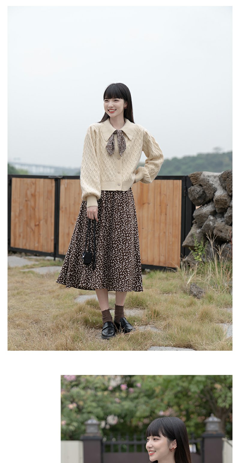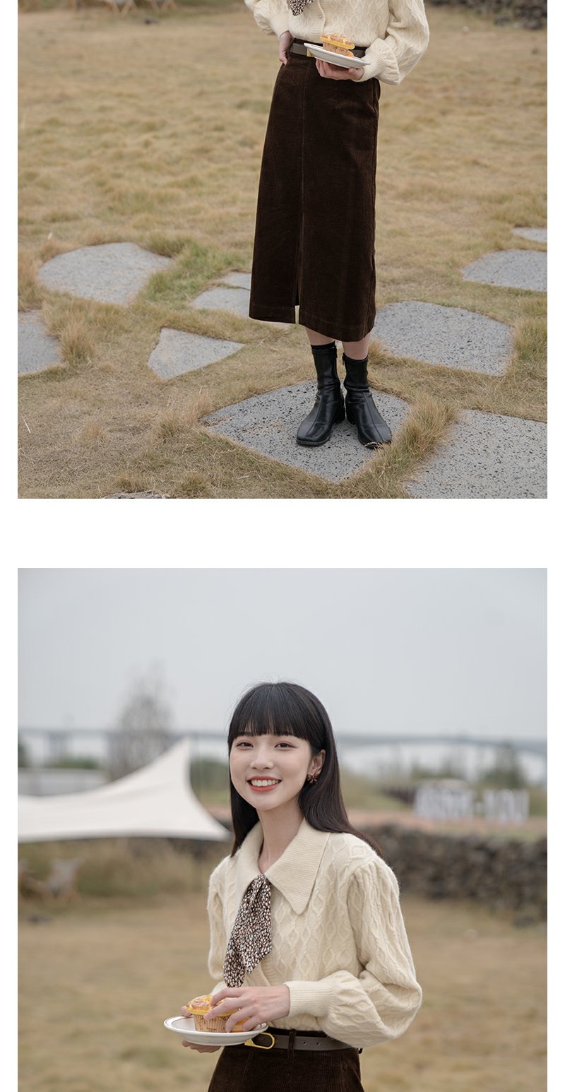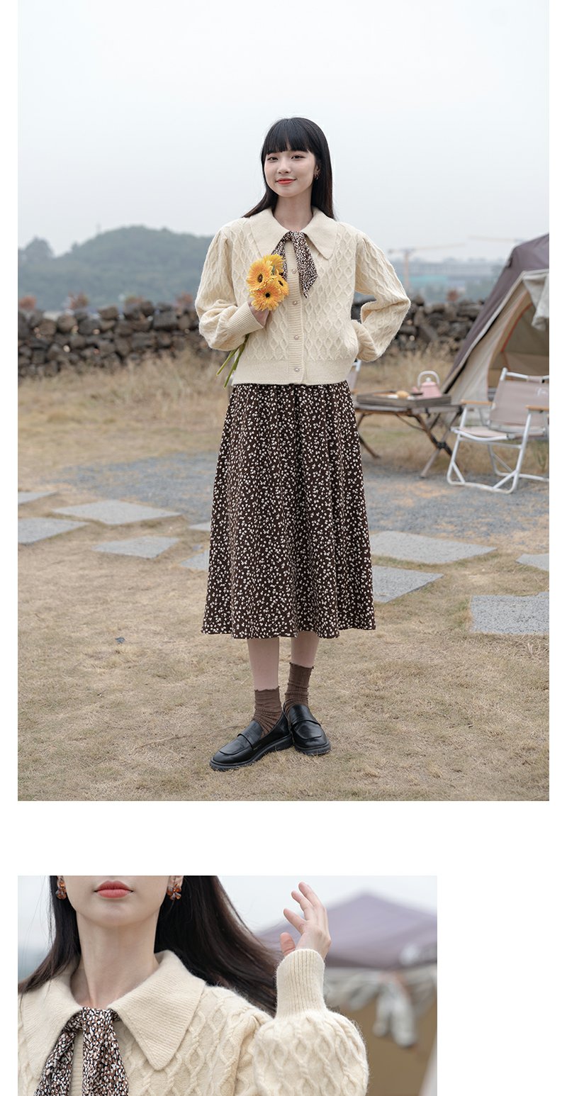鹿向南《杏仁咖啡》杏色毛衣外套2023款娃娃领针织衫设计感上衣女