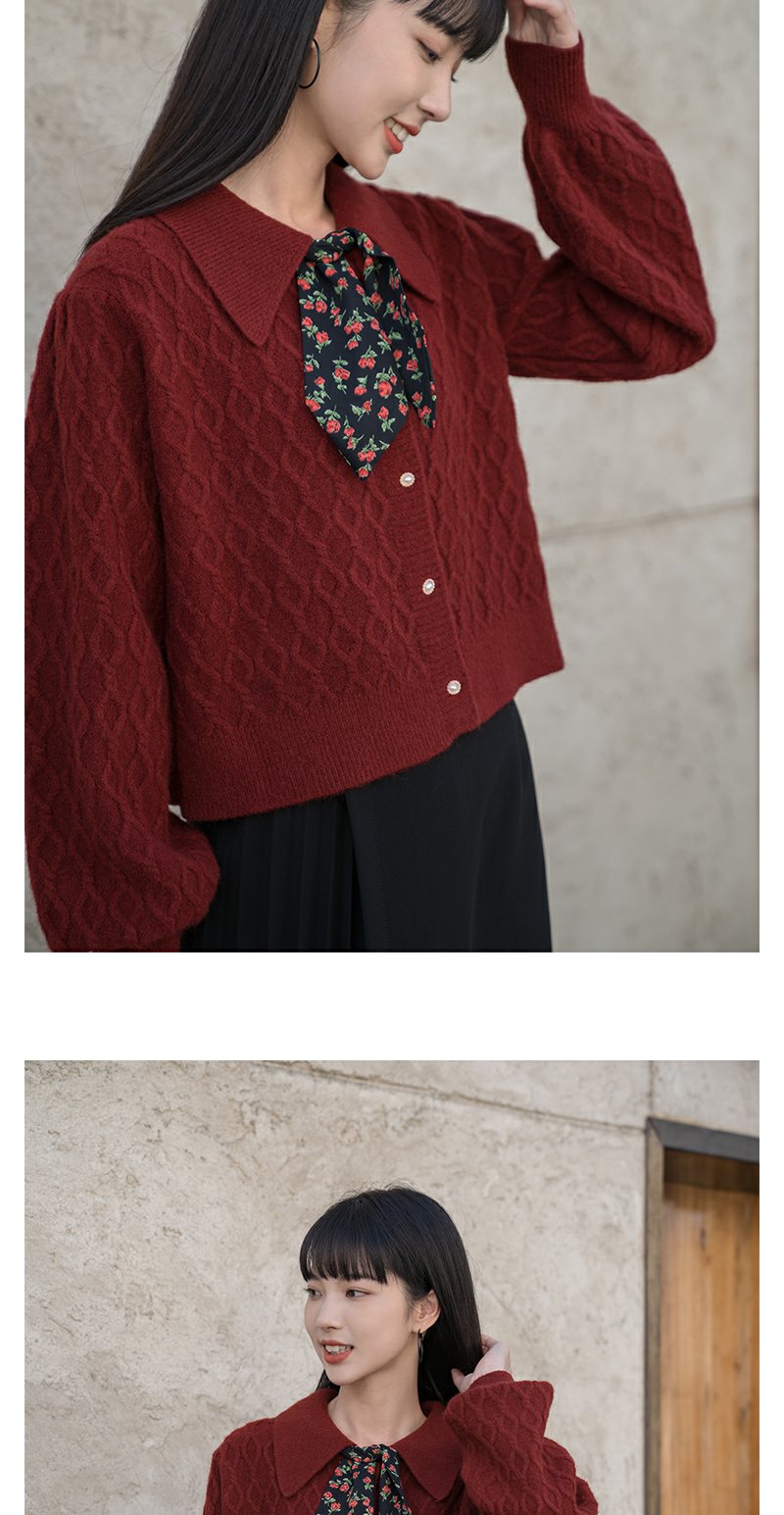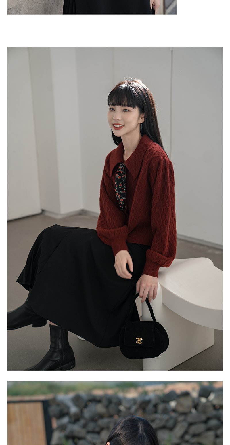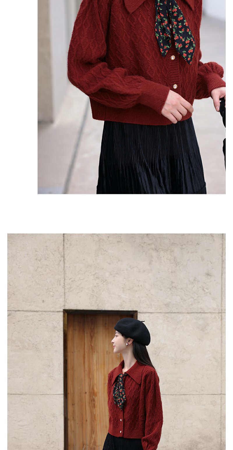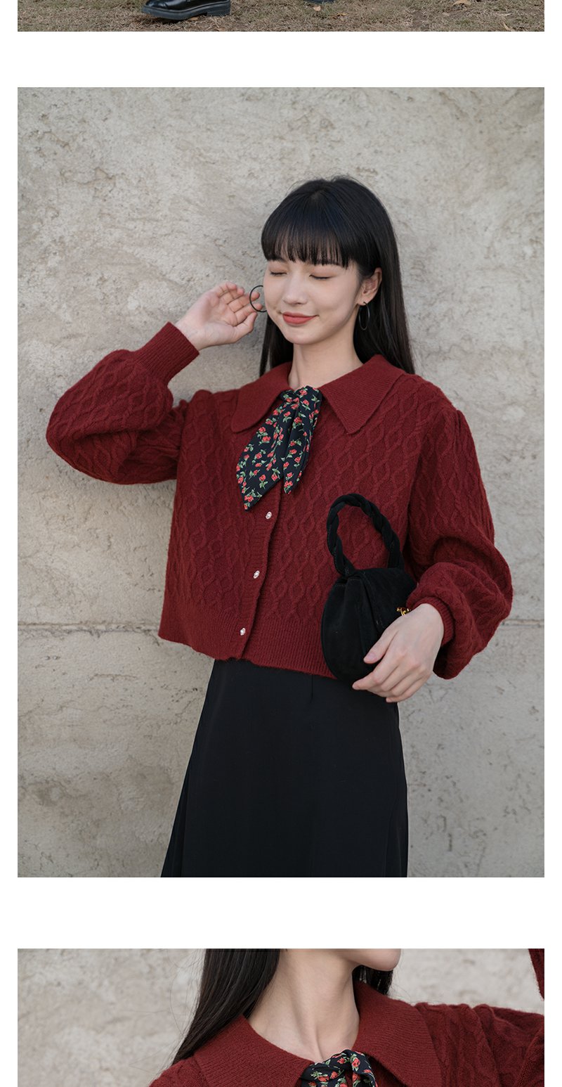 鹿向南《杏仁咖啡》杏色毛衣外套2023款娃娃领针织衫设计感上衣女