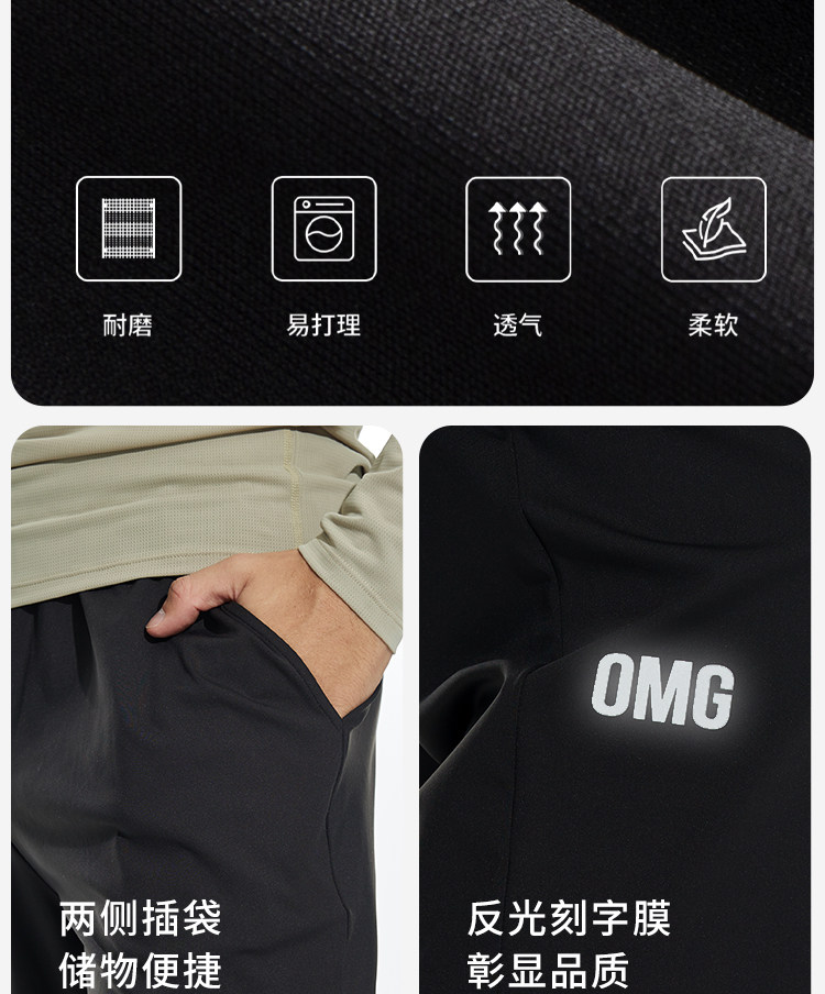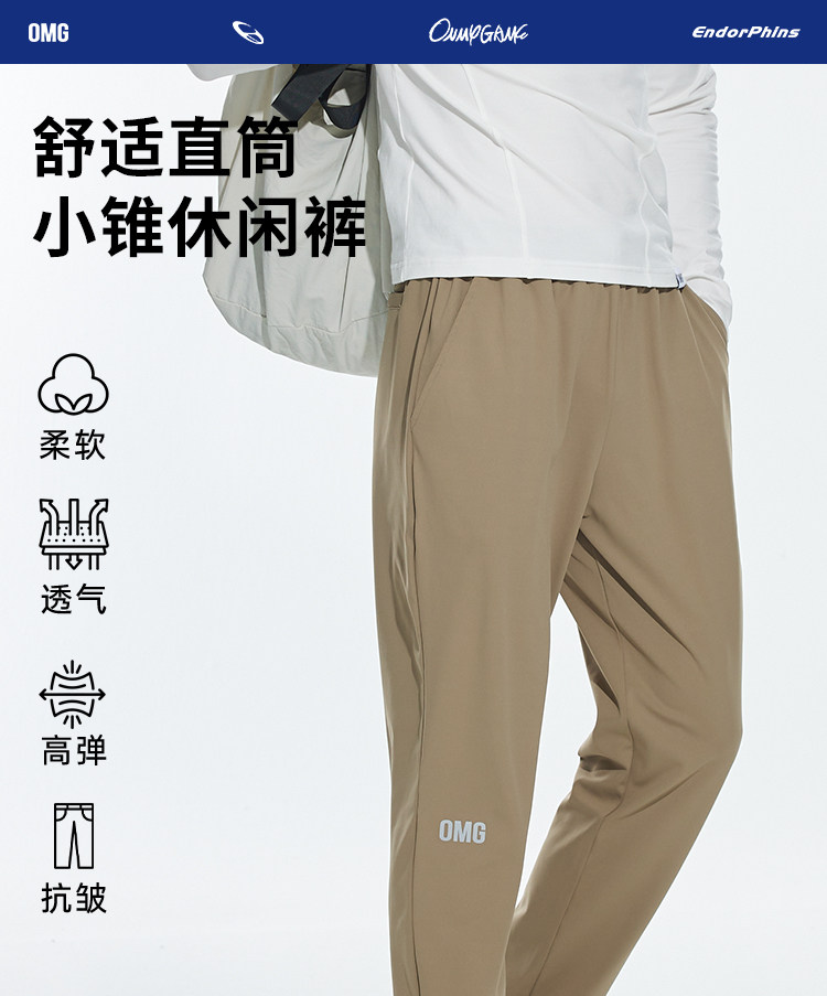 OMG运动 【不易皱】春秋季弹力运动裤休闲长裤男卫裤直筒宽松透气
