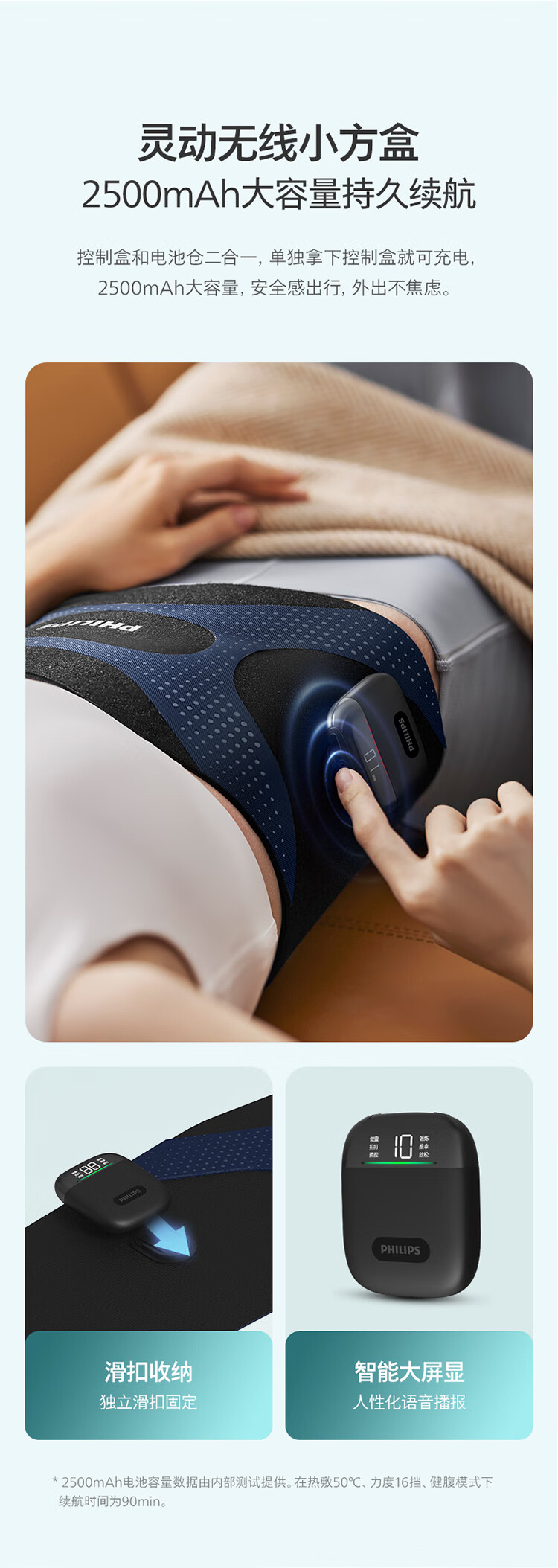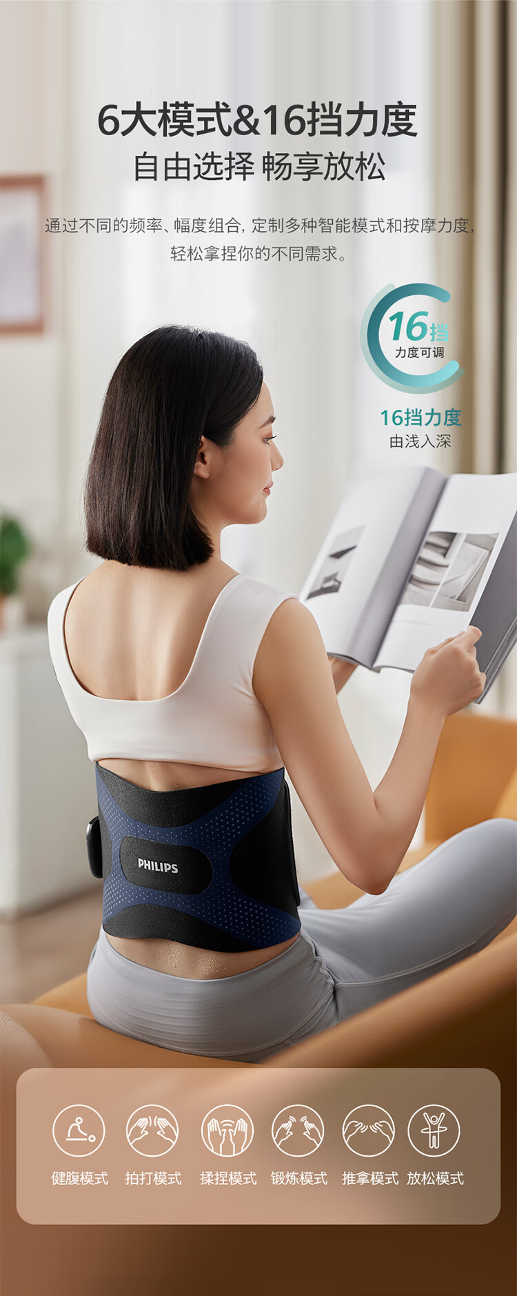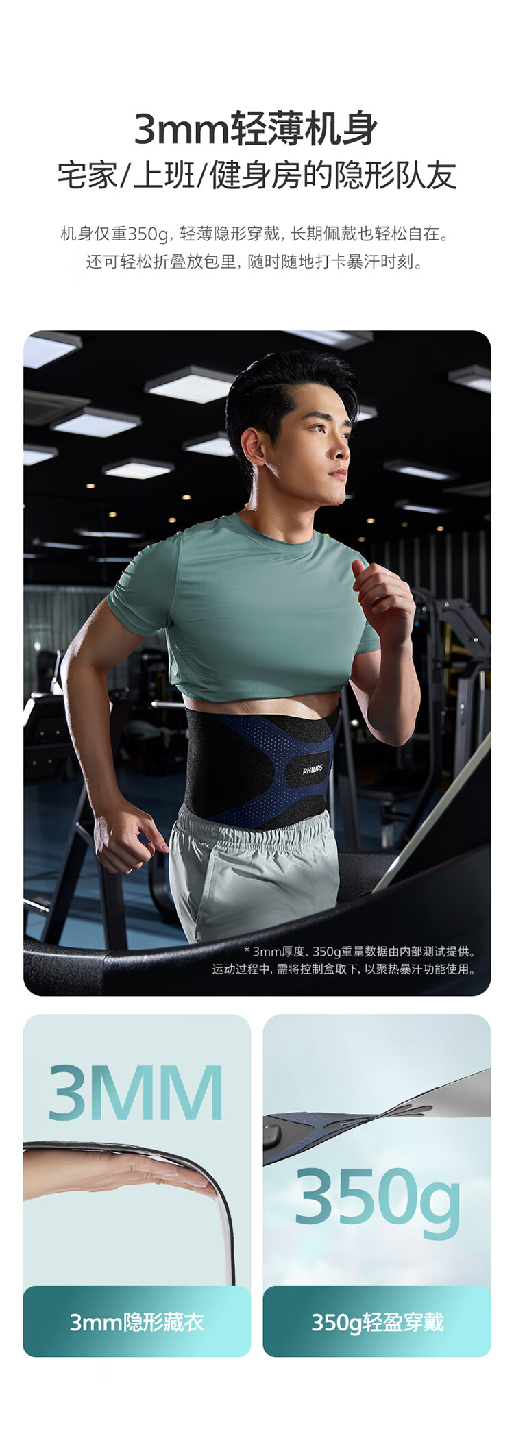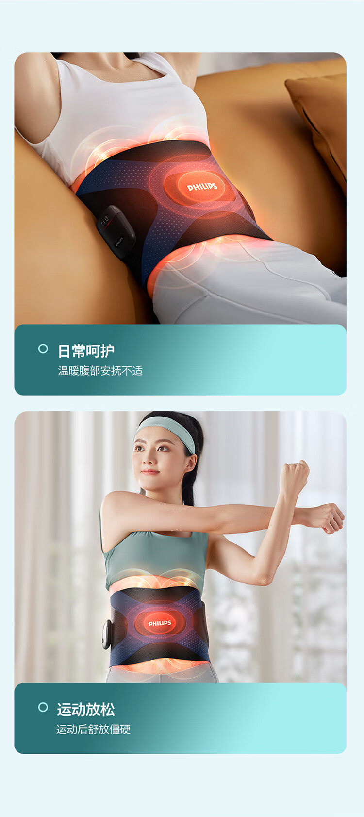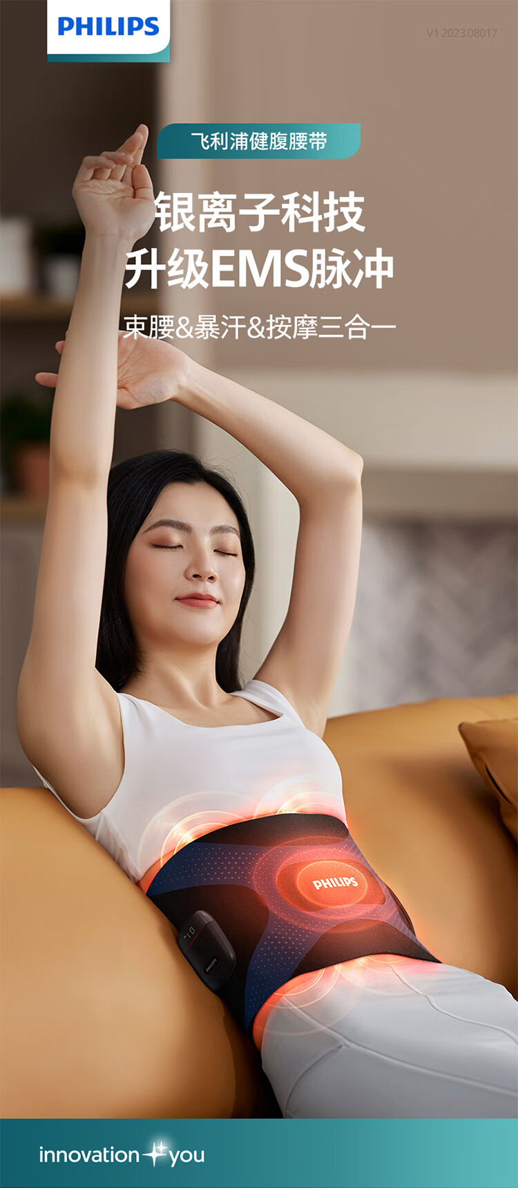 飞利浦(PHILIPS)懒人腰腹健身仪 EMS微电流无线热敷暴汗束腰收腹腰带腰腹按摩仪送父母男女友节日礼物PPM3305B