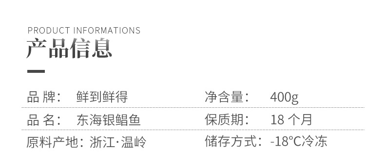 【400积分+84】鲜到鲜得 海捕银鲳鱼 400g*4包(4条/包) 野生捕捞