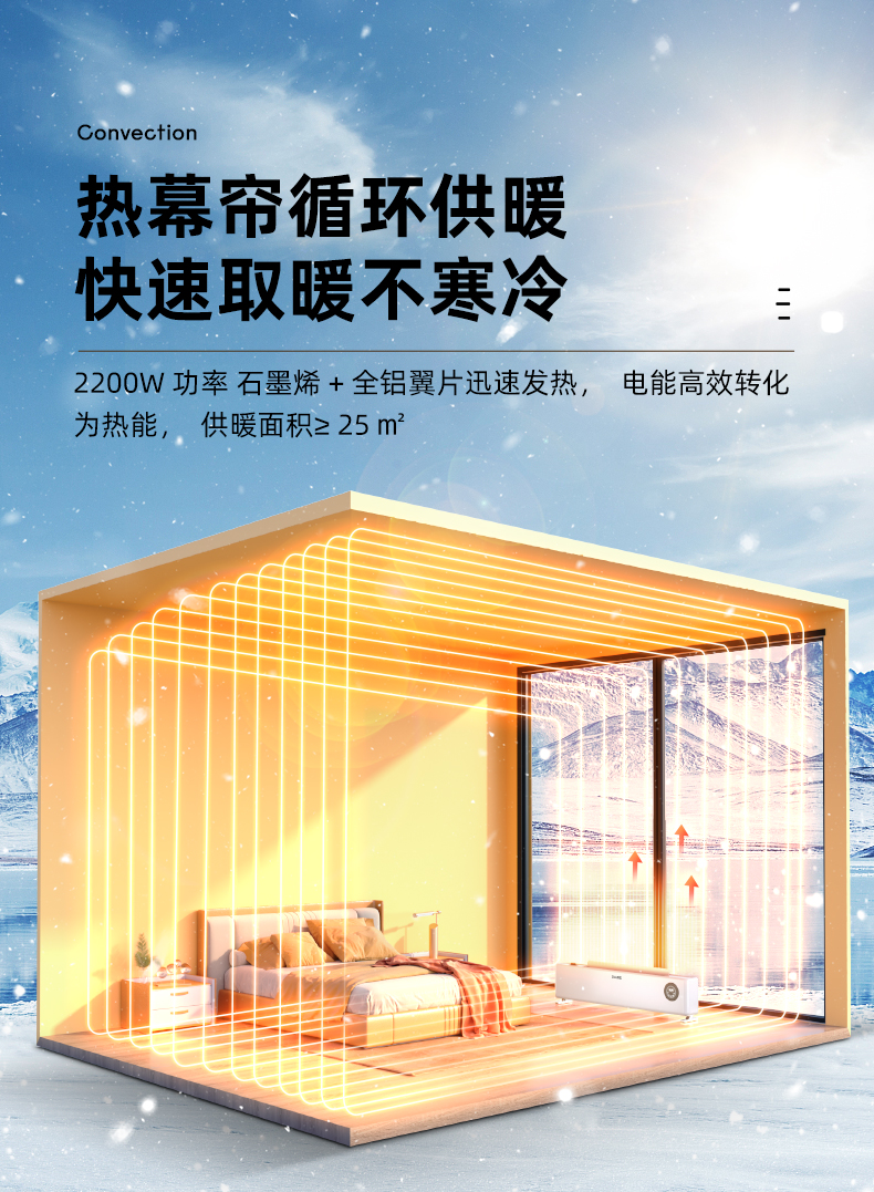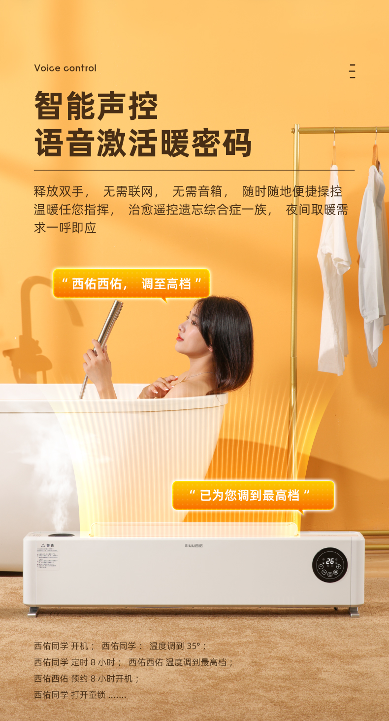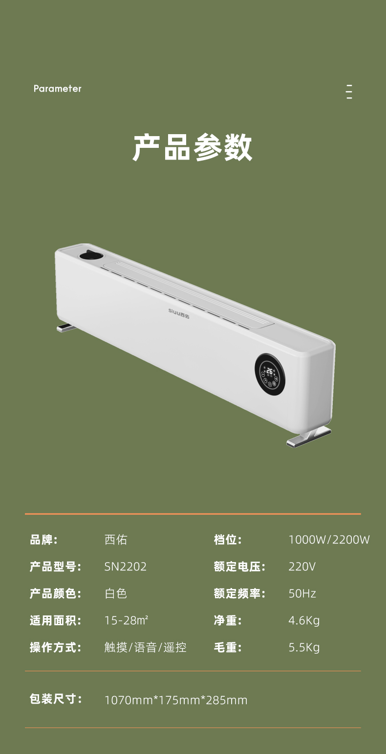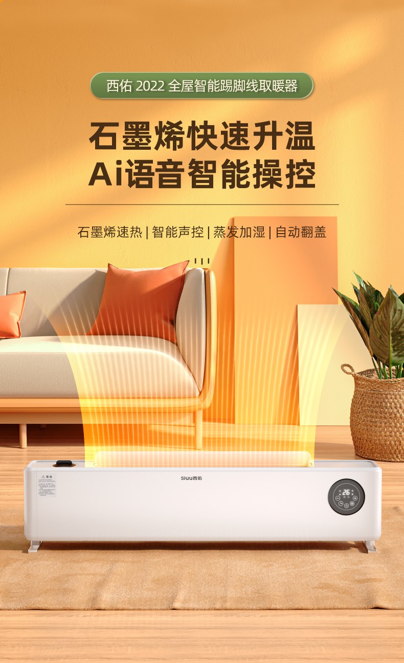 西佑(工厂直发)石墨烯踢脚线取暖器电暖器全屋智能居浴两用智能声控移动地暖速热节能暖气片