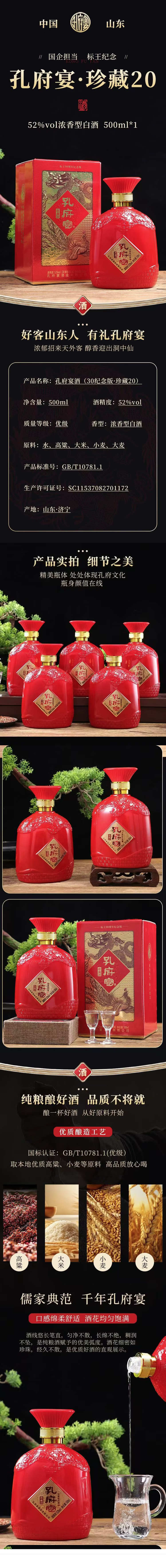 【新版口粮】孔府宴 珍藏20 浓香型白酒 52度 500ml*6瓶整箱