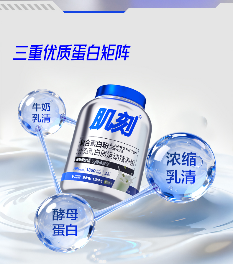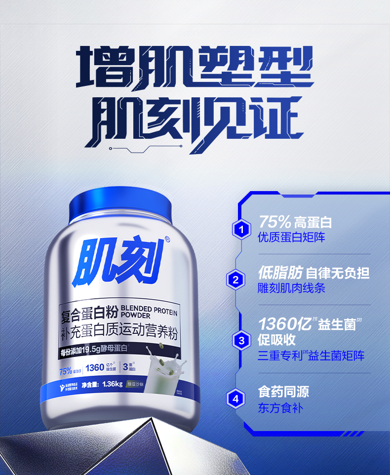 康比特肌刻复合蛋白粉75%高蛋白低脂低乳糖健身增肌蛋白粉1360g 绿豆沙味