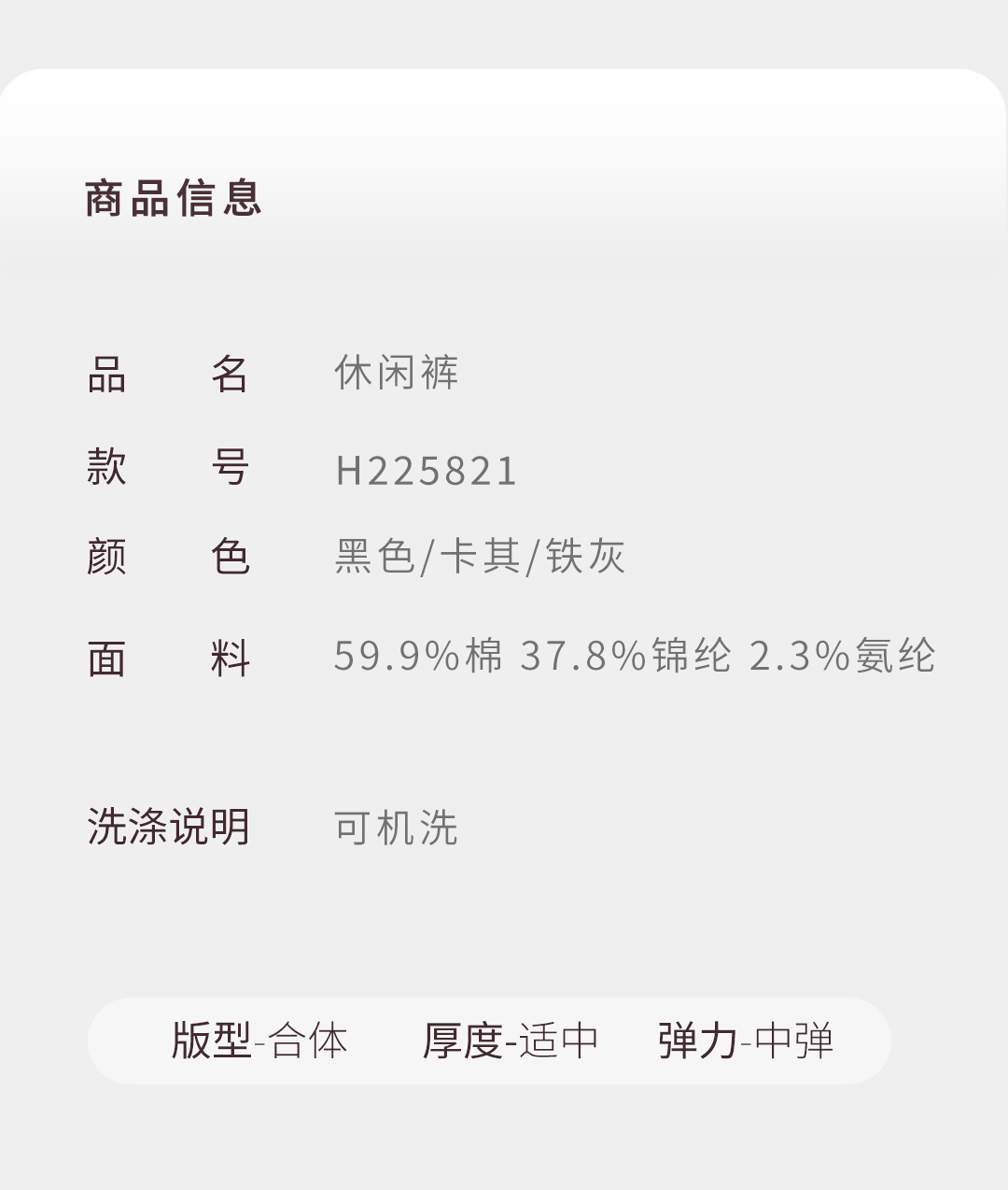 【轻旅系列】男士青年冬款直筒休闲裤百塔长裤H225821