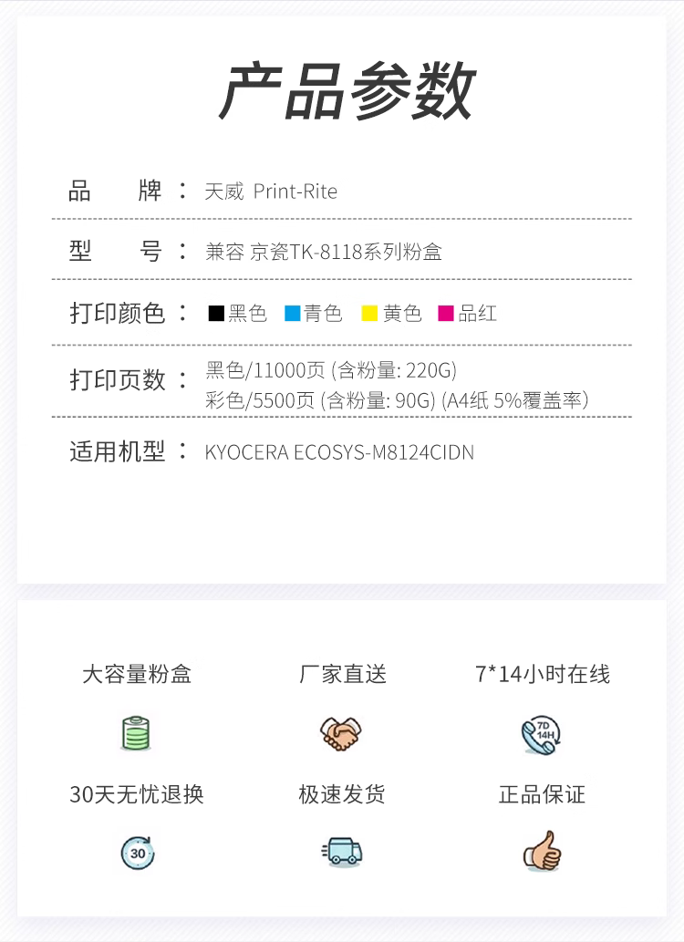 天威 TK-8118粉盒 适用京瓷M8124cidn 墨盒 打印一体复合碳粉 粉筒粉仓
