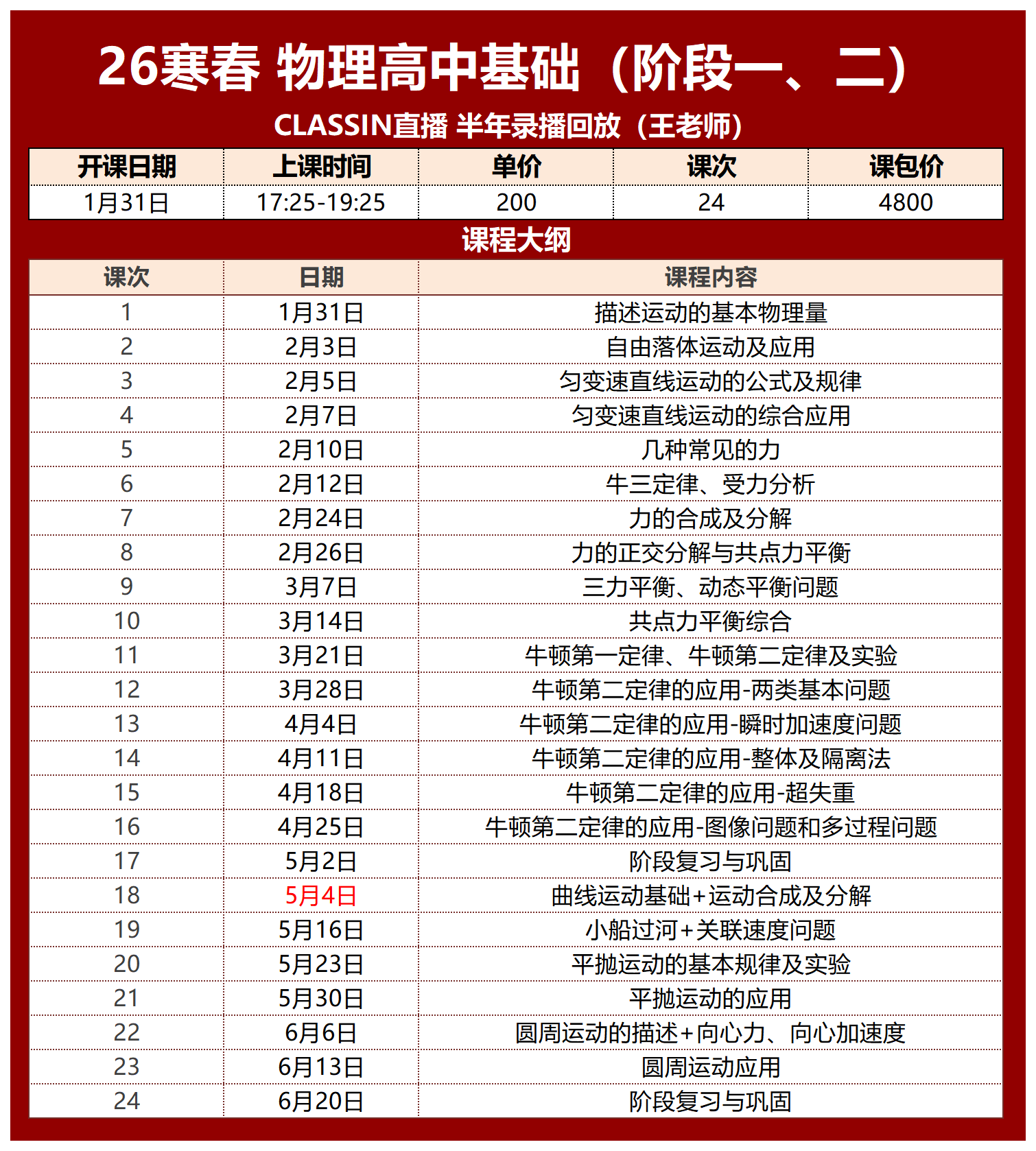 26寒春 高中物理(阶段一、二)试听 商品缩略图0