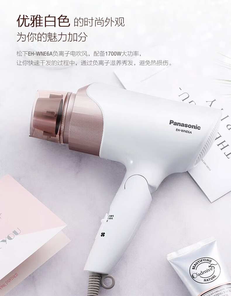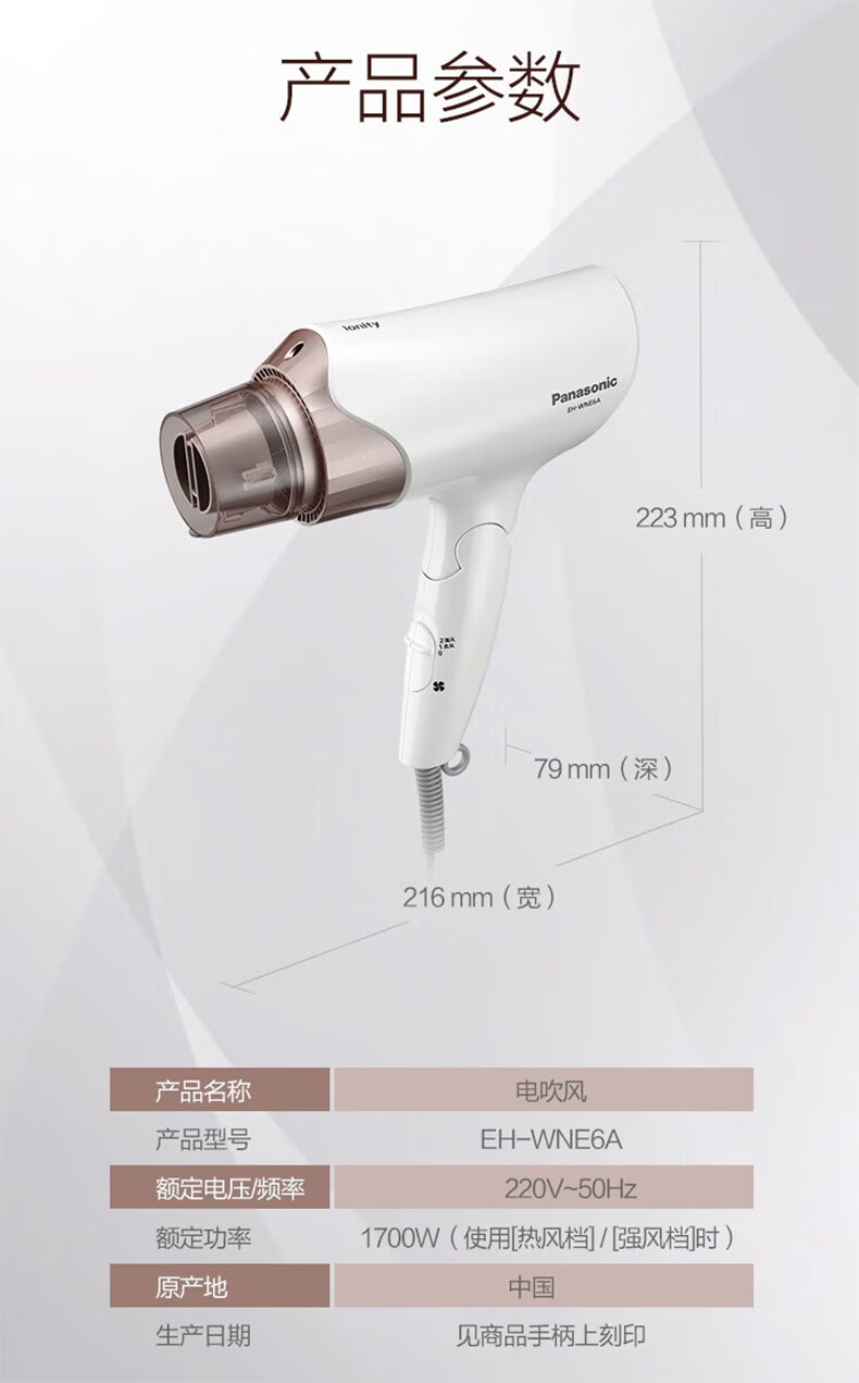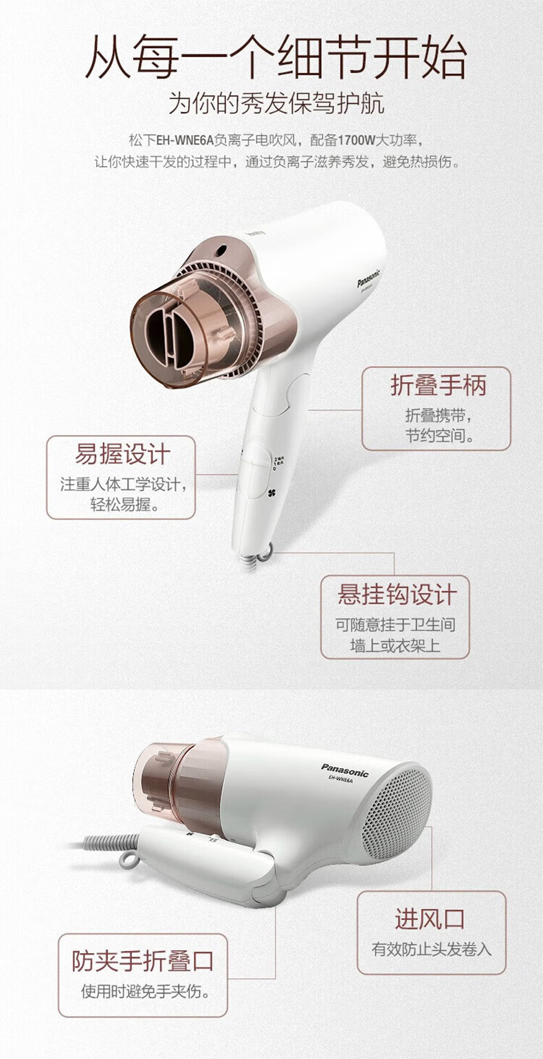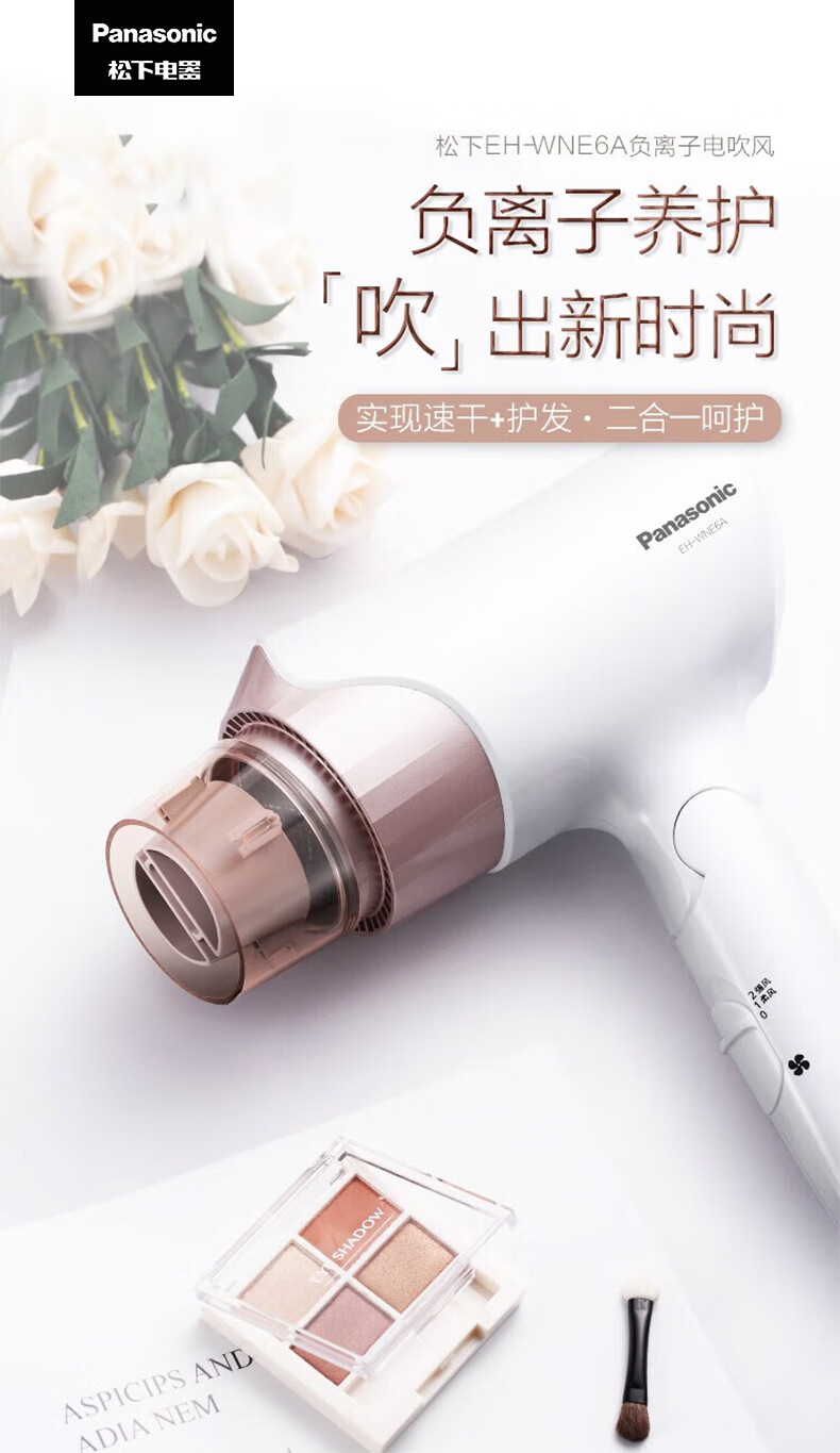 松下(Panasonic)负离子电吹风机筒高速大功率不伤发家用低噪速干护发送女友礼物EH-WNE6_qb
