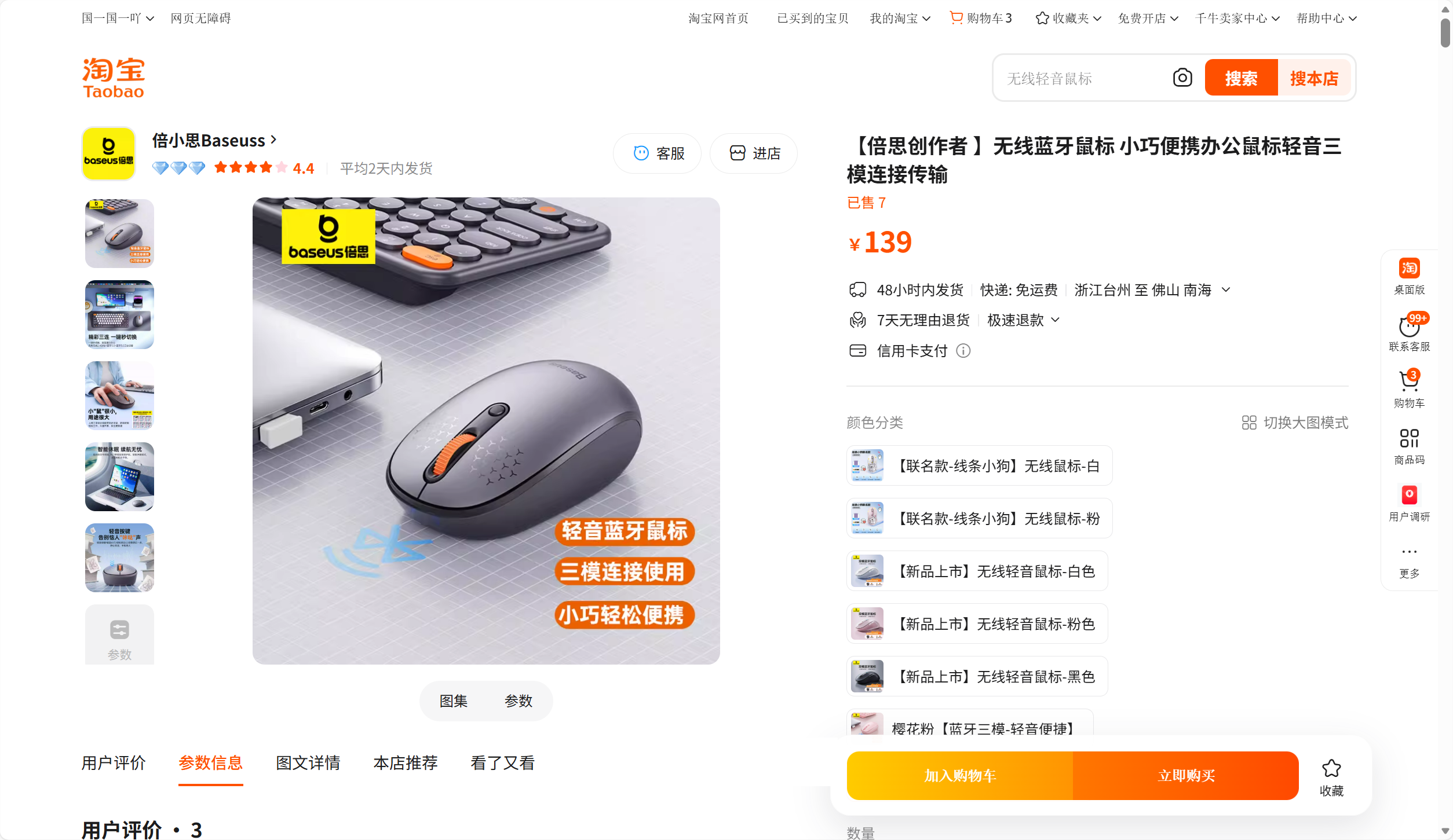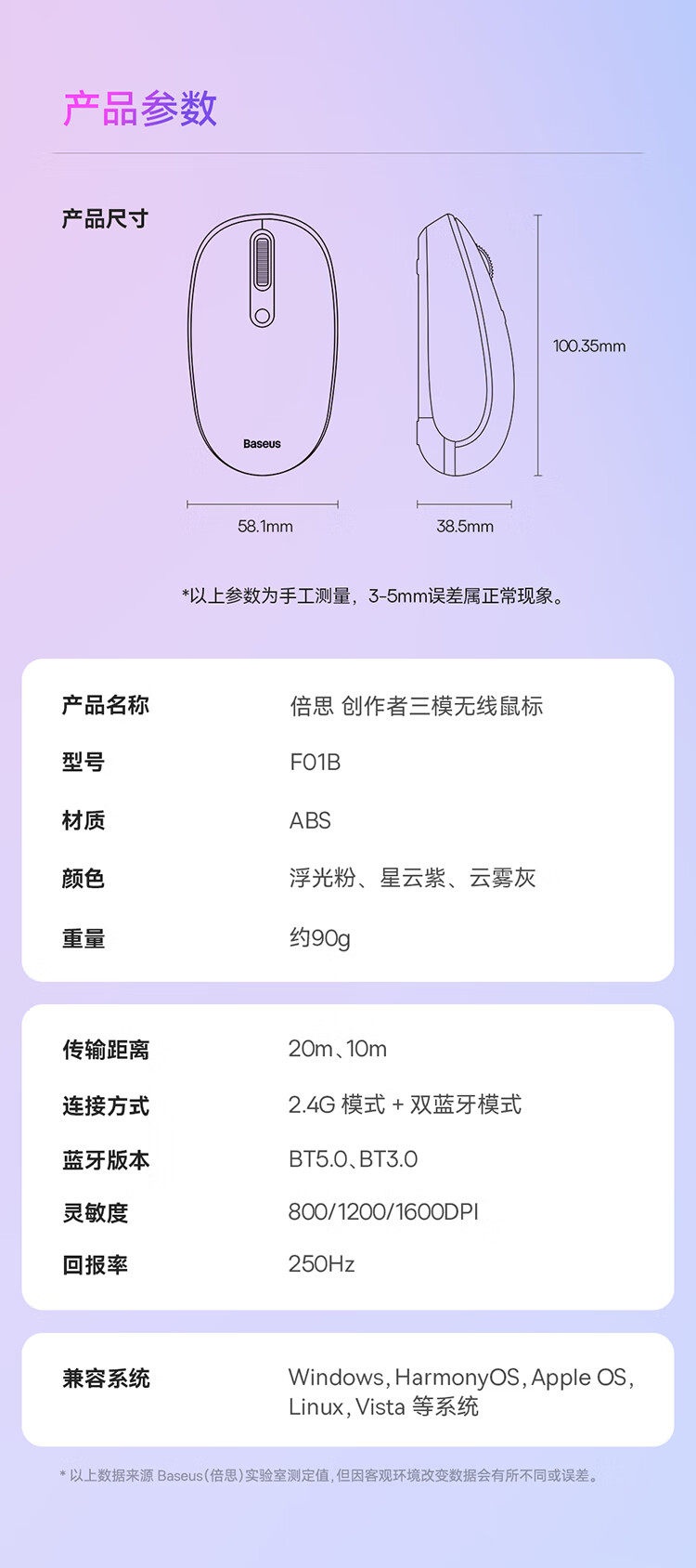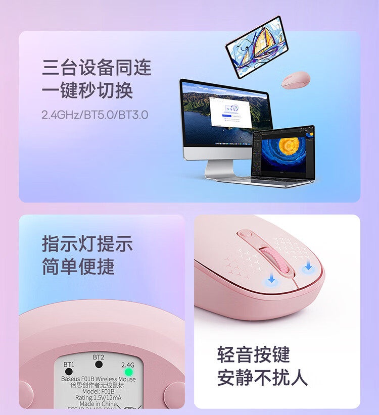 Baseus/倍思 创作者小巧便携办公无线轻音三模鼠标 F01