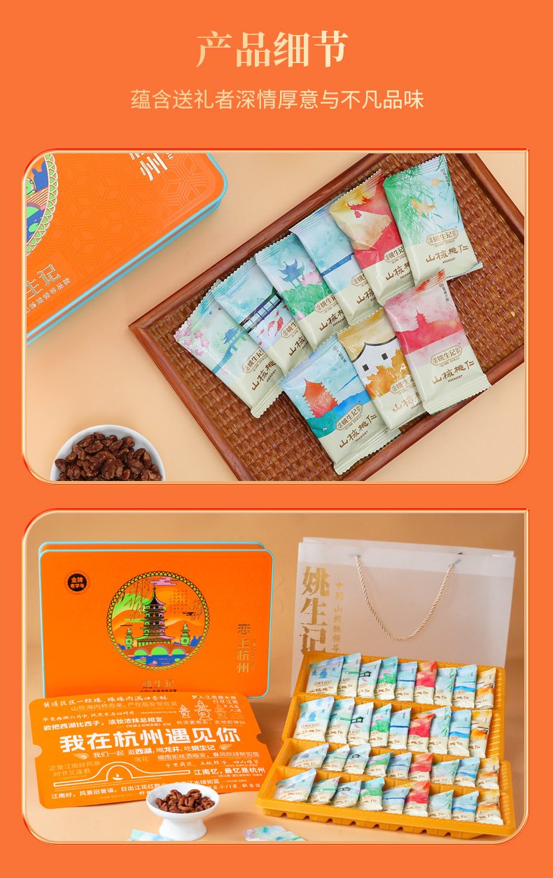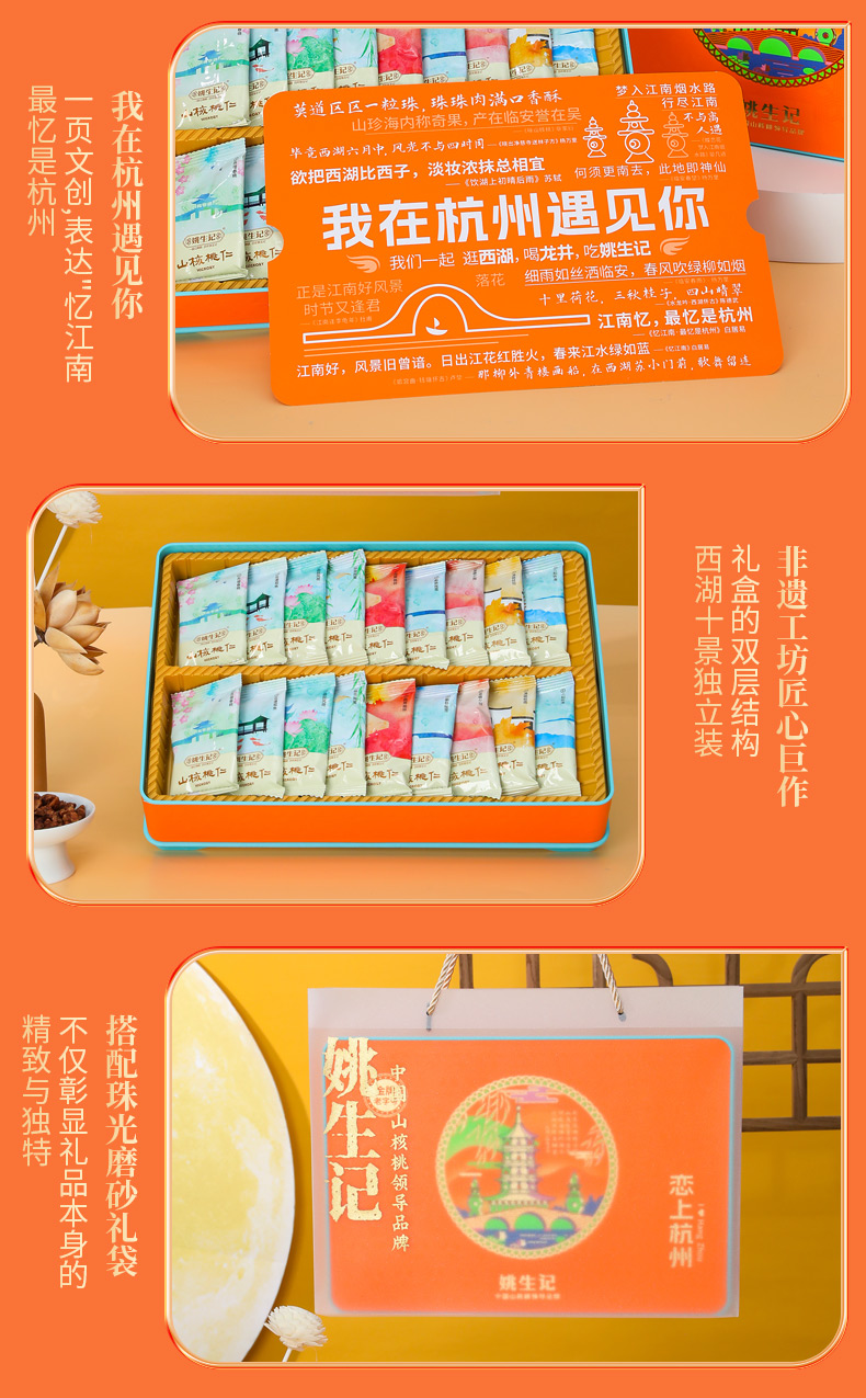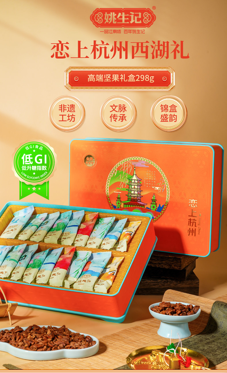 【抱元宝 迎财神】姚生记新货八方来财/平安喜乐坚果礼盒 恋上西湖/杭州山核桃仁礼盒 粒粒精心挑选 壳薄易剥 口味醇香 送礼佳品