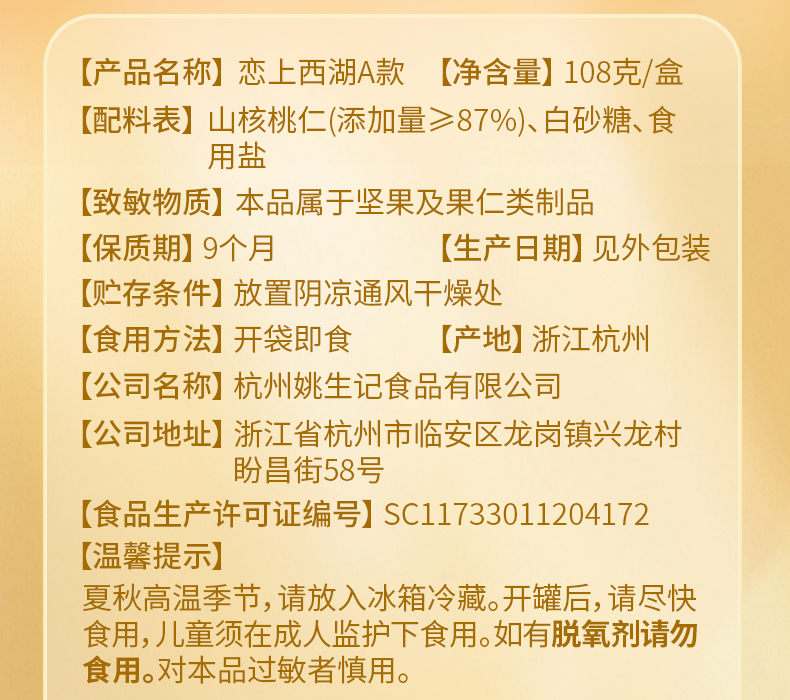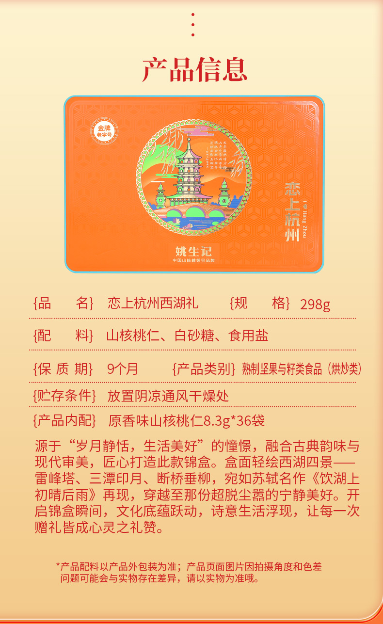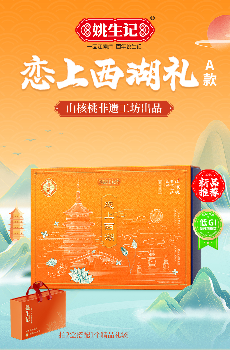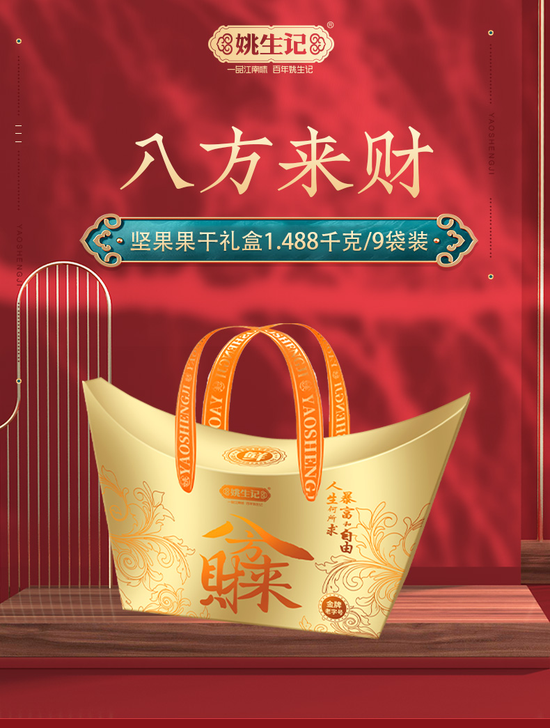 【抱元宝 迎财神】姚生记新货八方来财/平安喜乐坚果礼盒 恋上西湖/杭州山核桃仁礼盒 粒粒精心挑选 壳薄易剥 口味醇香 送礼佳品