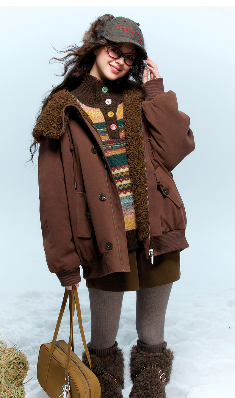 三彩独醒2025冬季新款环保皮草两面穿连帽毛毛外套保暖甜酷F