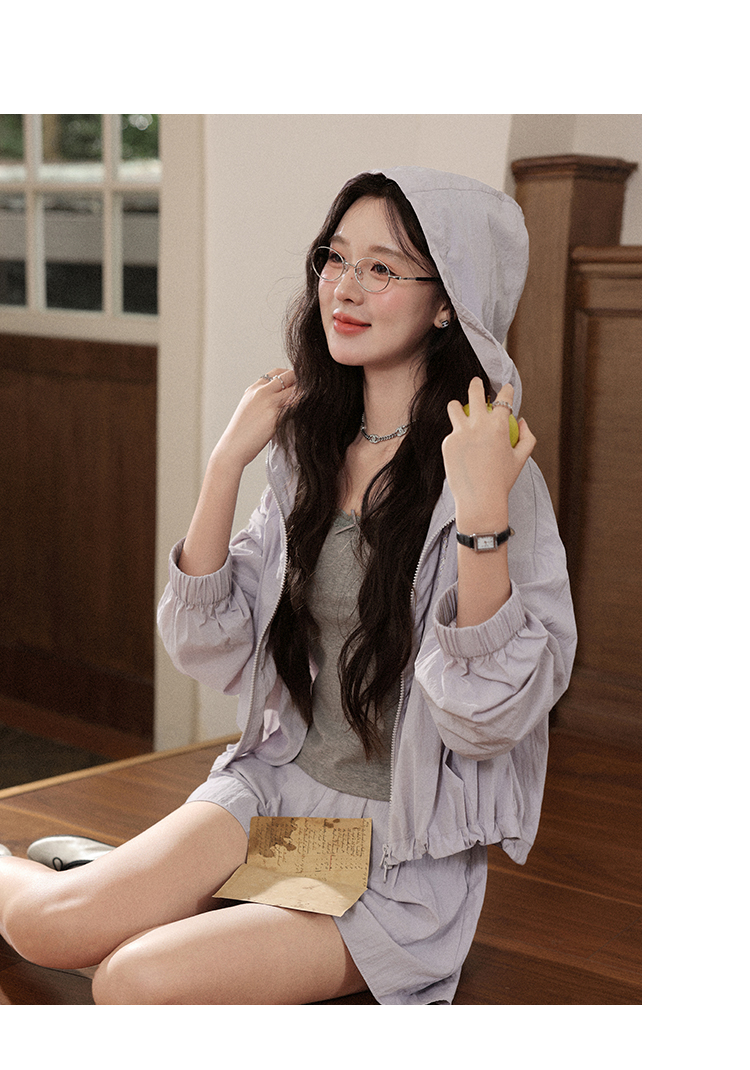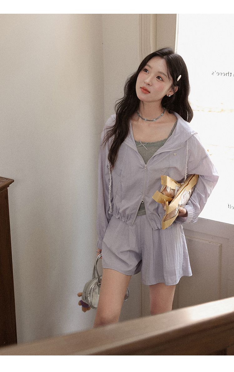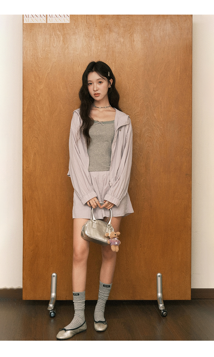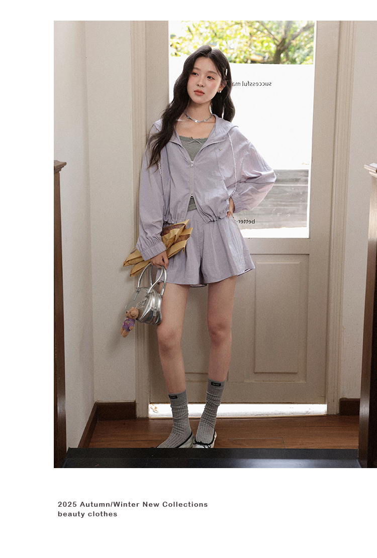 鹿向南「星河遐想」紫色连帽长袖短外套短裤灰色背心秋新款套装女L56706DK+L56706