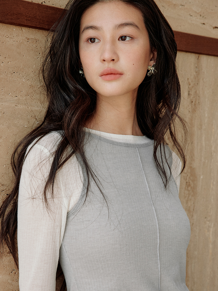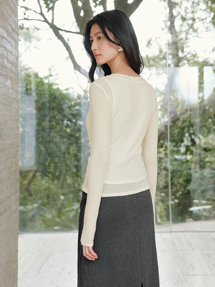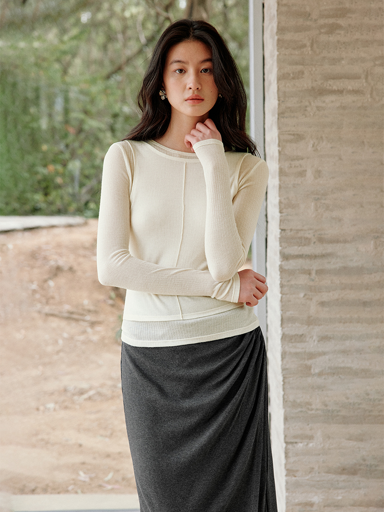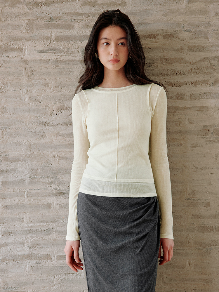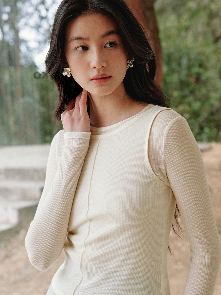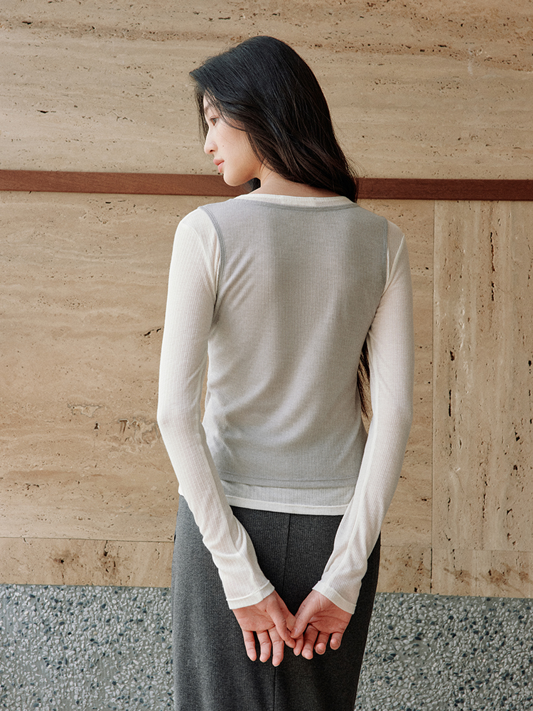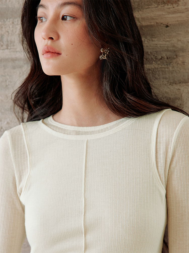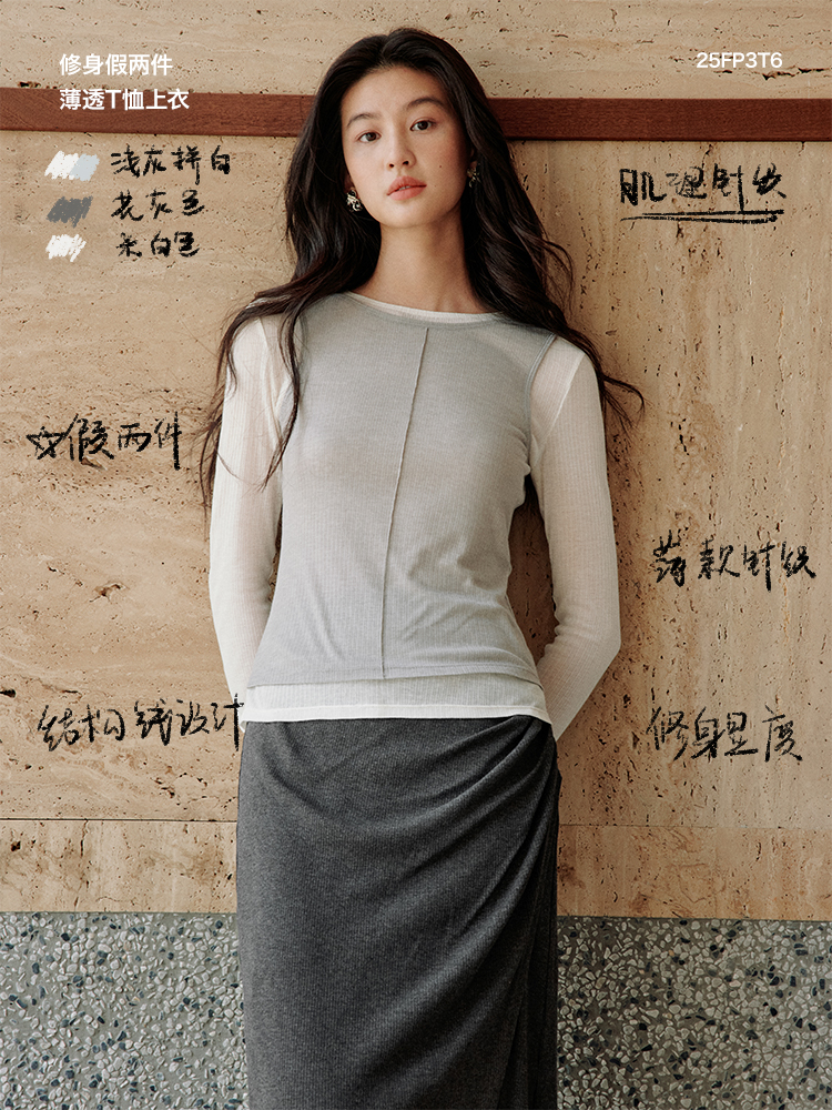 ForPoem 现货 25/SS原创设计修身显瘦假两件薄透T恤上衣