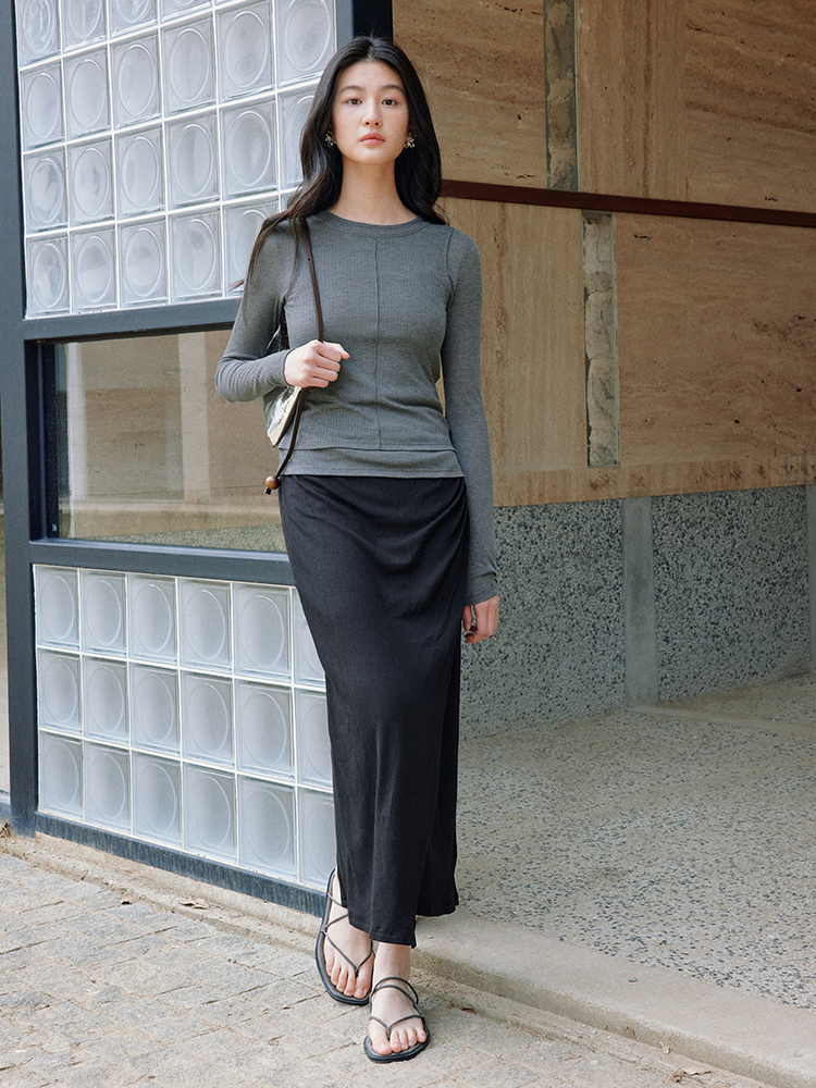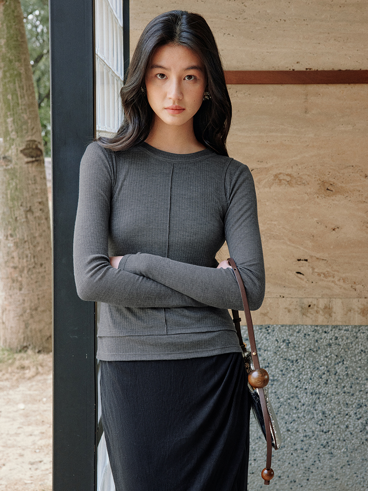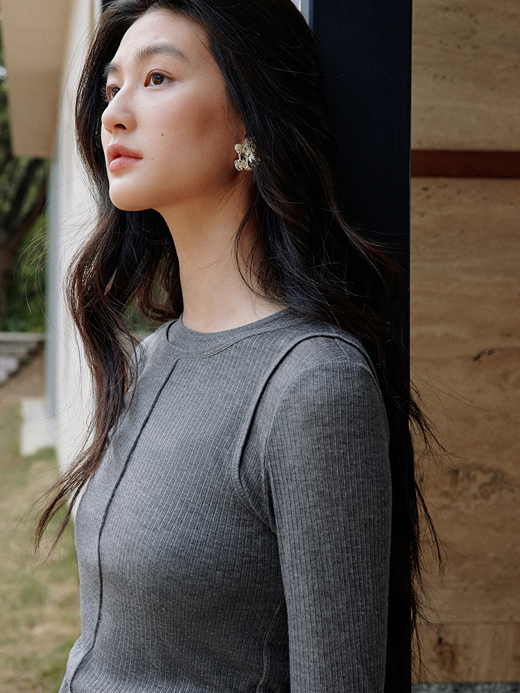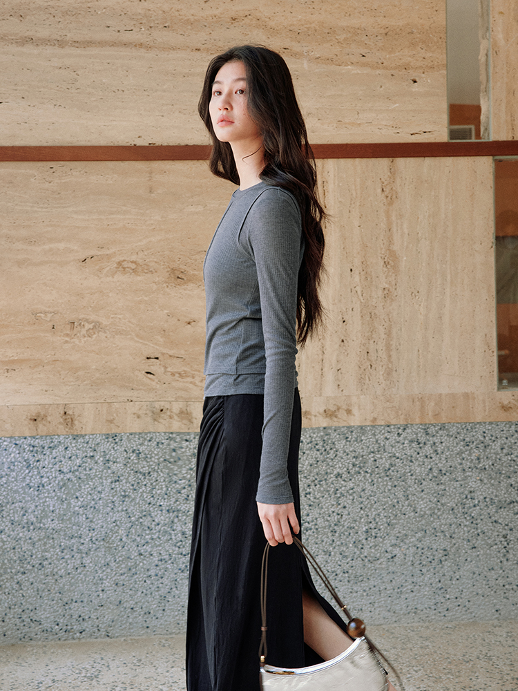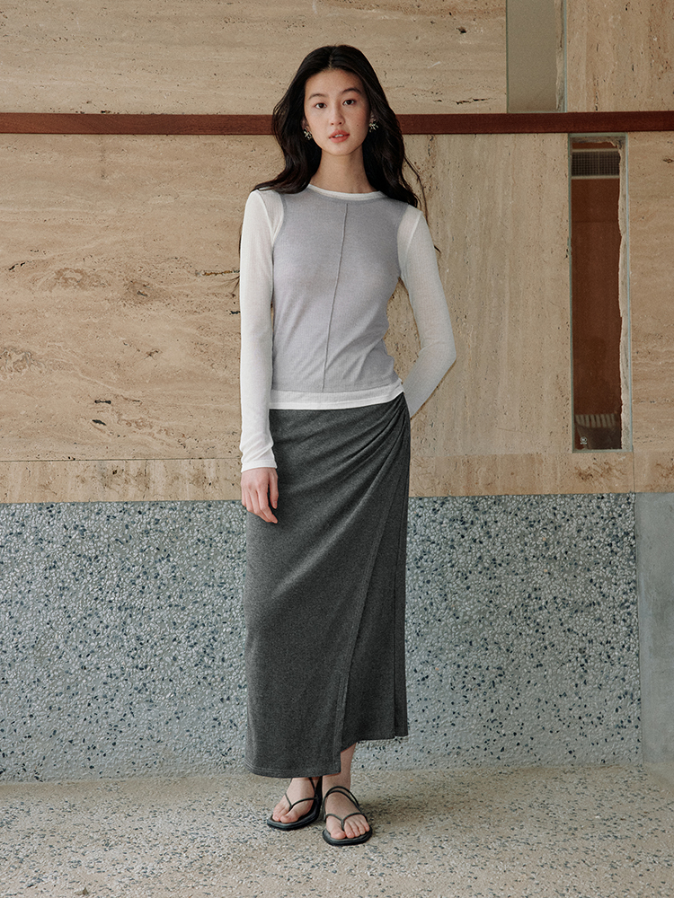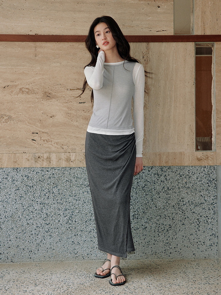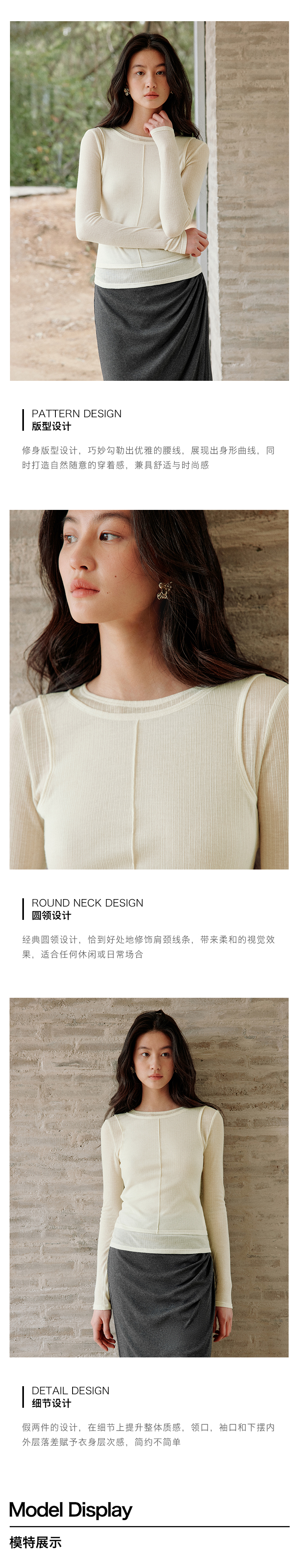 ForPoem 现货 25/SS原创设计修身显瘦假两件薄透T恤上衣