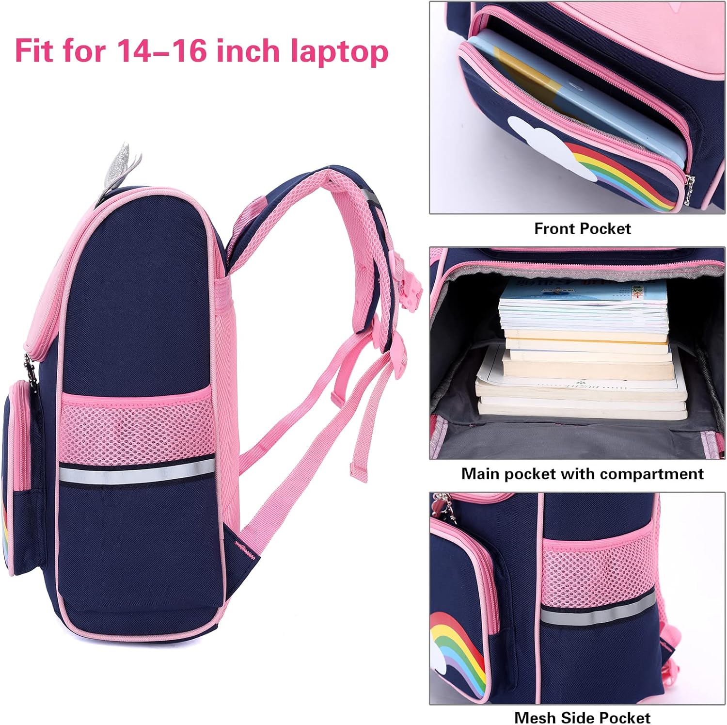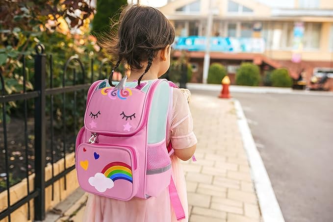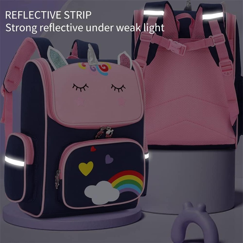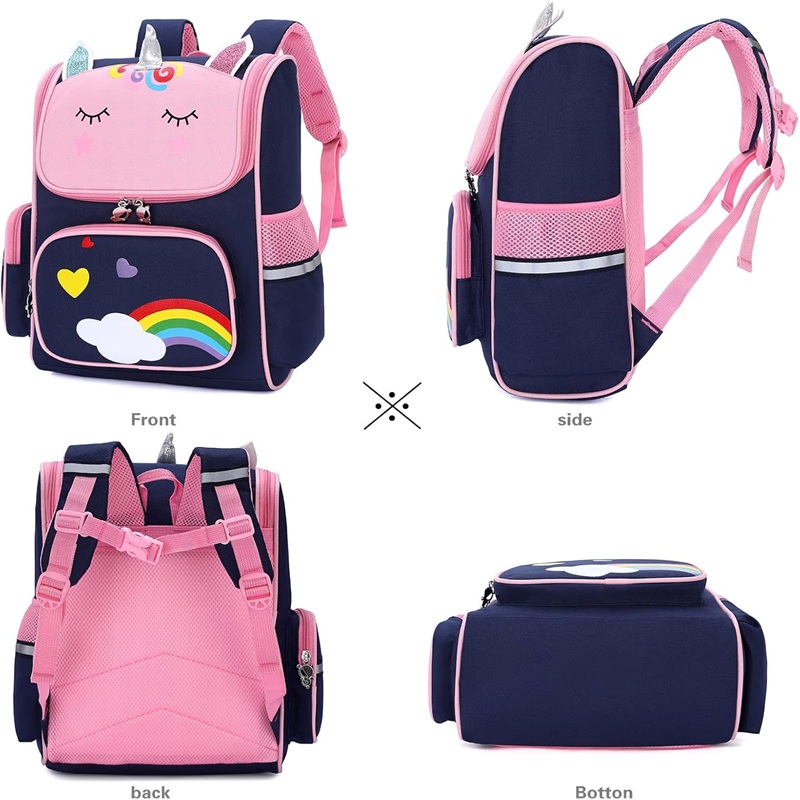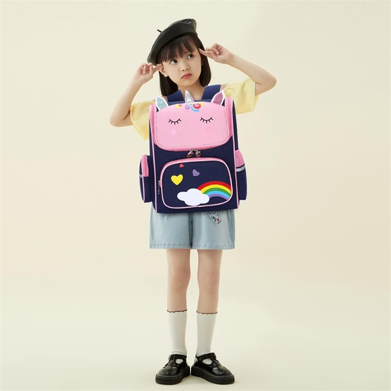 儿童书包配有可调节的软垫肩带和软垫保护,保护女儿背重书时的背部。这个背包非常适合小学生使用。