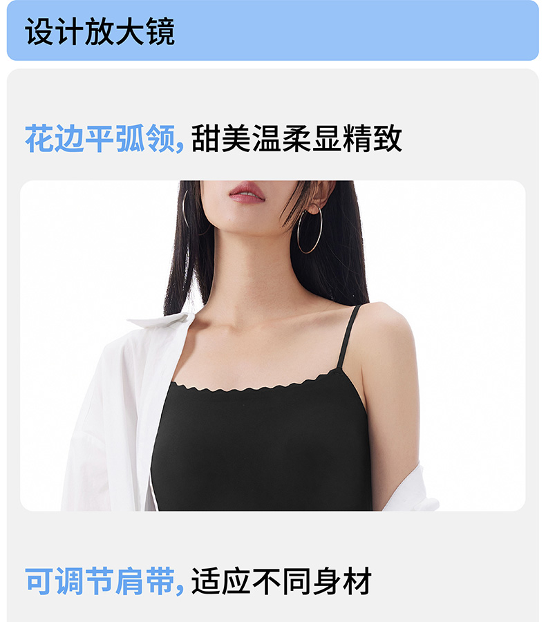 半练无痕花纹边平口吊带TA066,文胸+背心合二为一的款式,自带胸垫,杯垫和胸型贴合也很紧密,舒适度极高