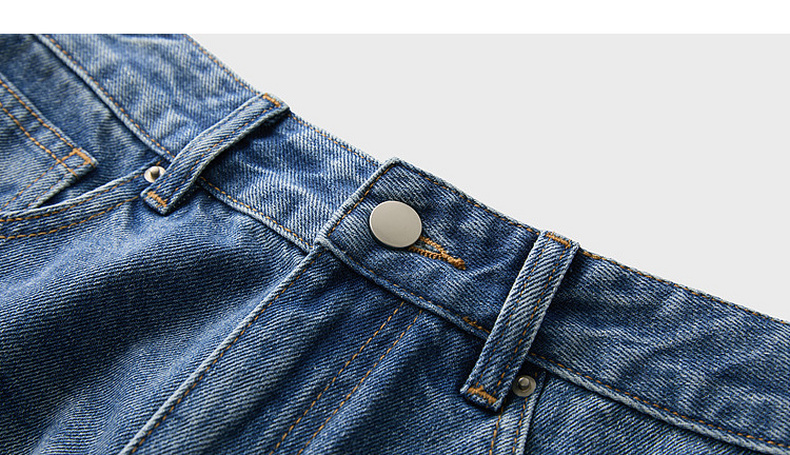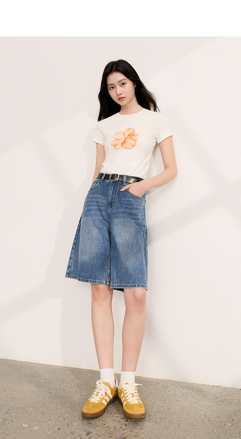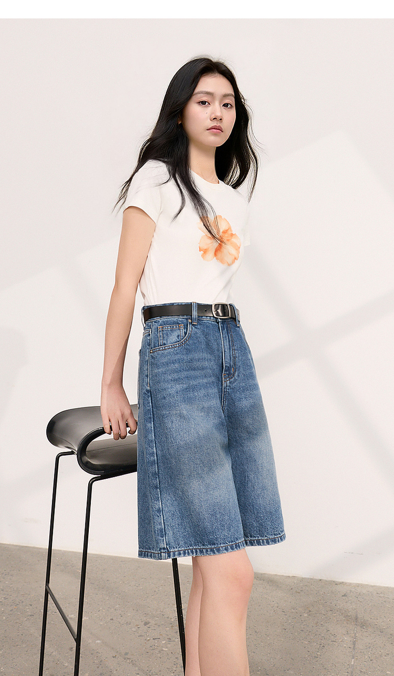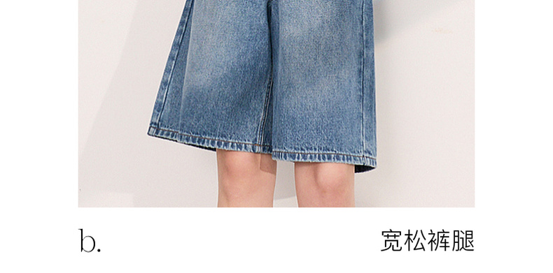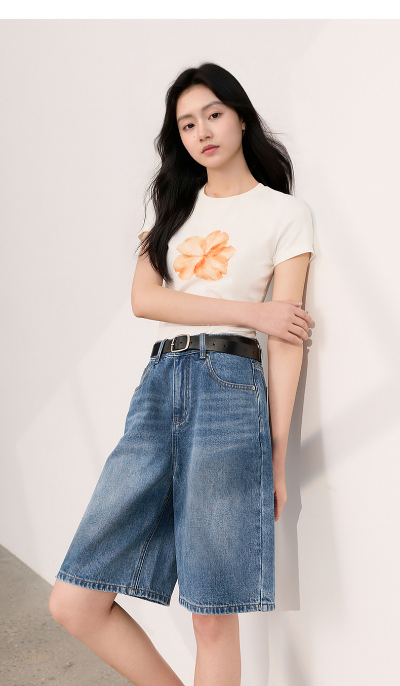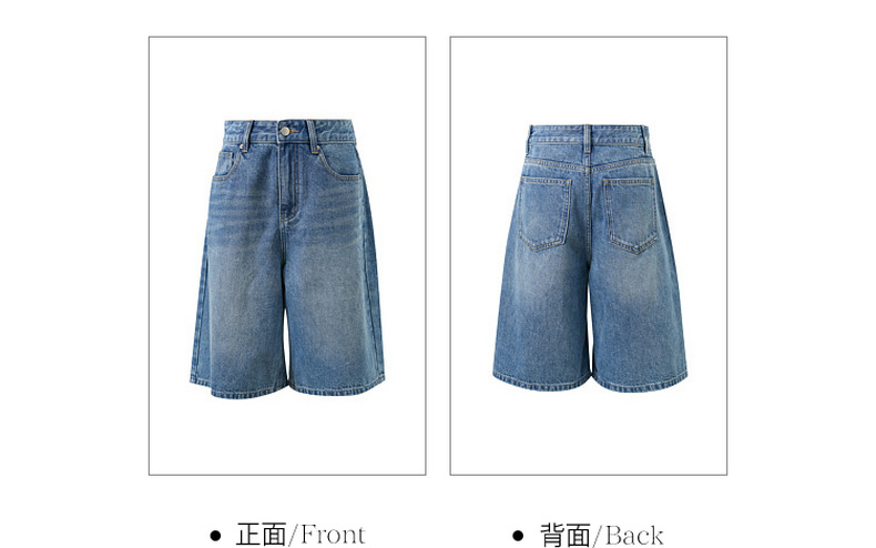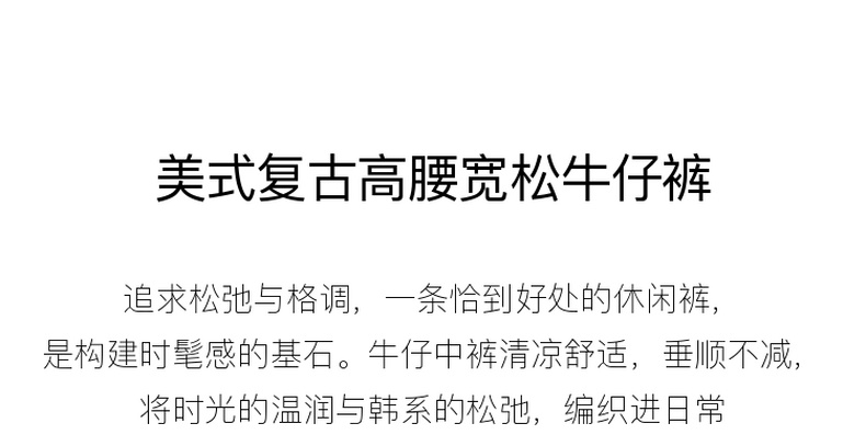 三彩2026夏季新款美式复古休闲牛仔裤高腰宽松阔腿裤五分裤中裤M