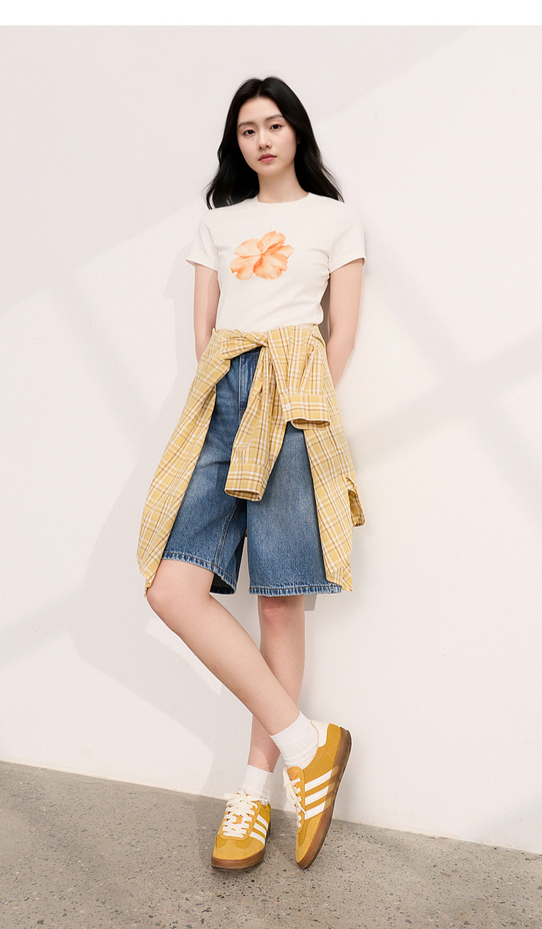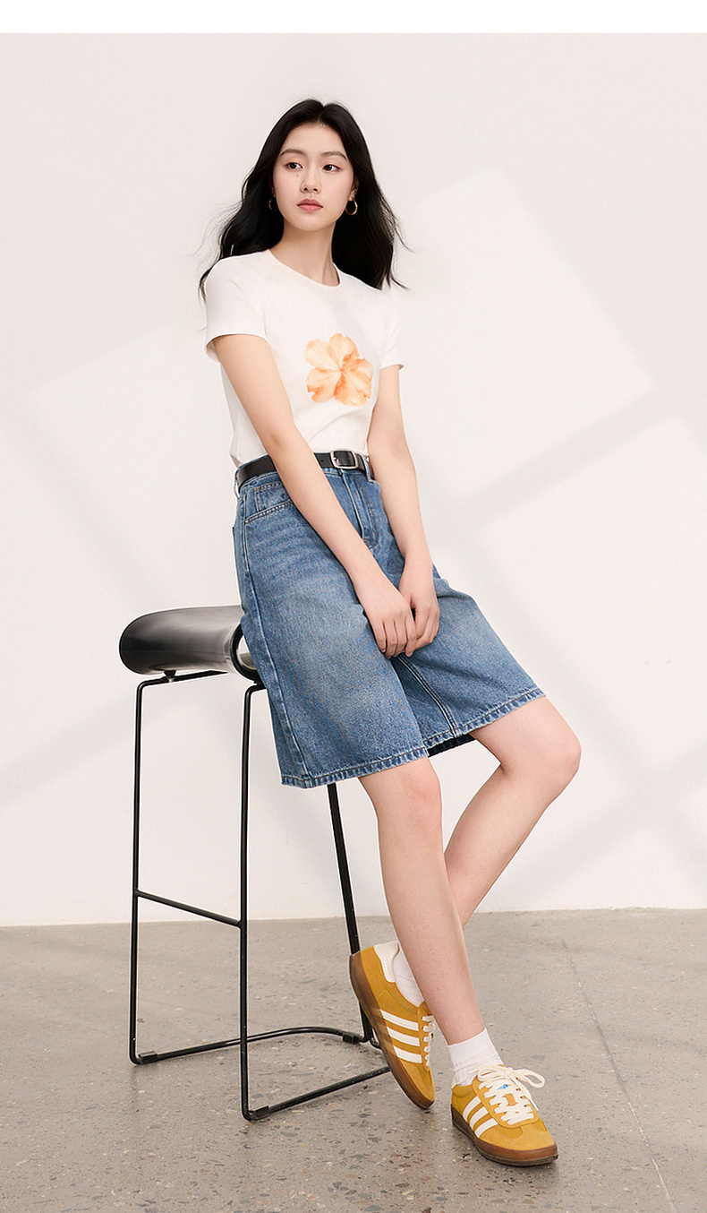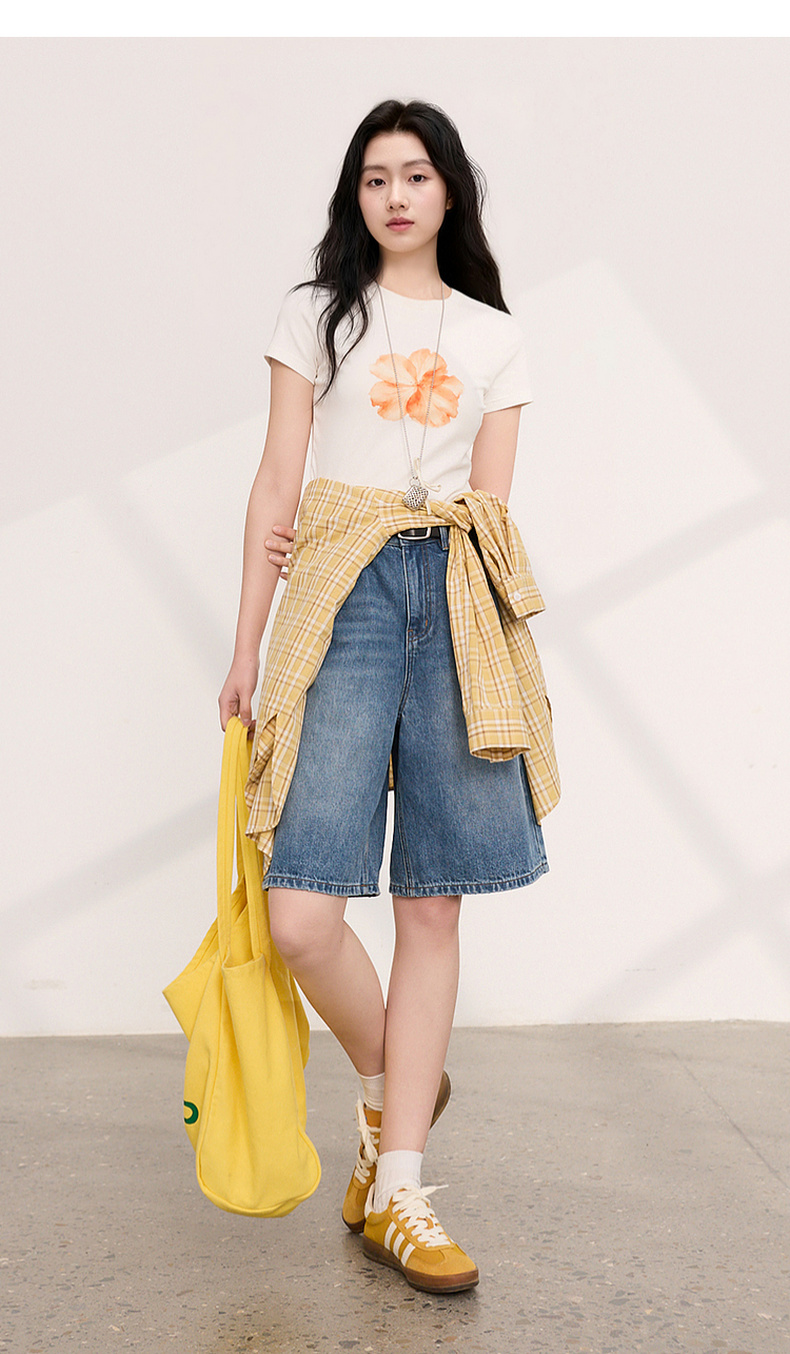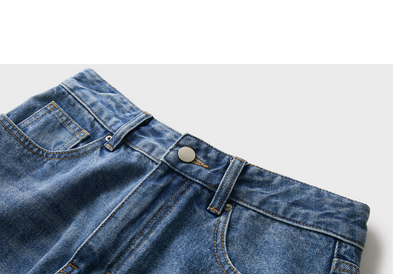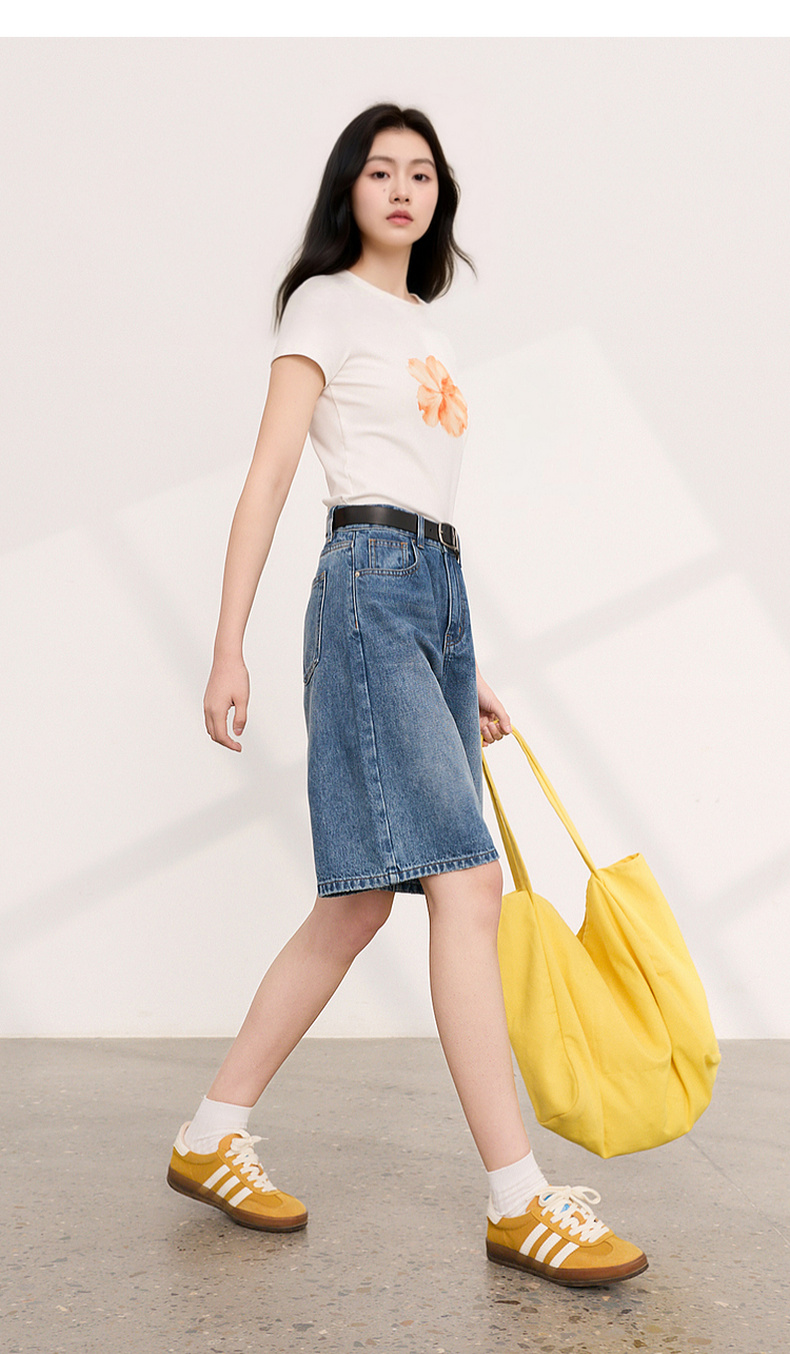 三彩2026夏季新款美式复古休闲牛仔裤高腰宽松阔腿裤五分裤中裤M