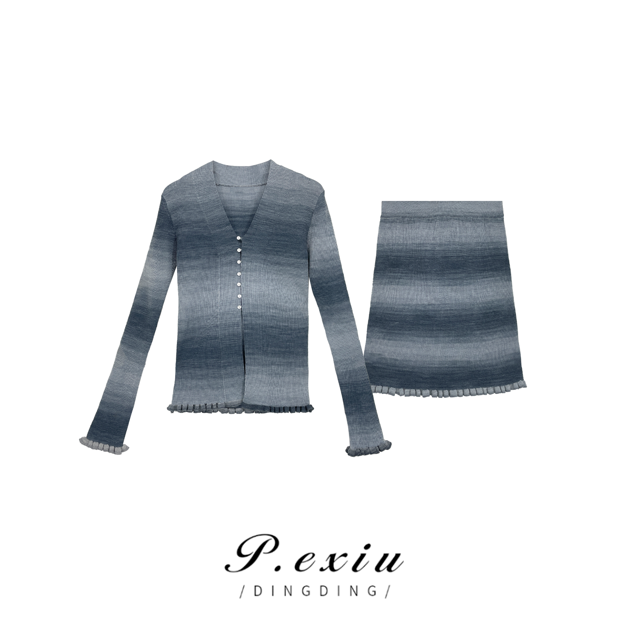 04-2潘依绣丁丁宠粉撞色条纹套装V领针织半身裙 Z15019