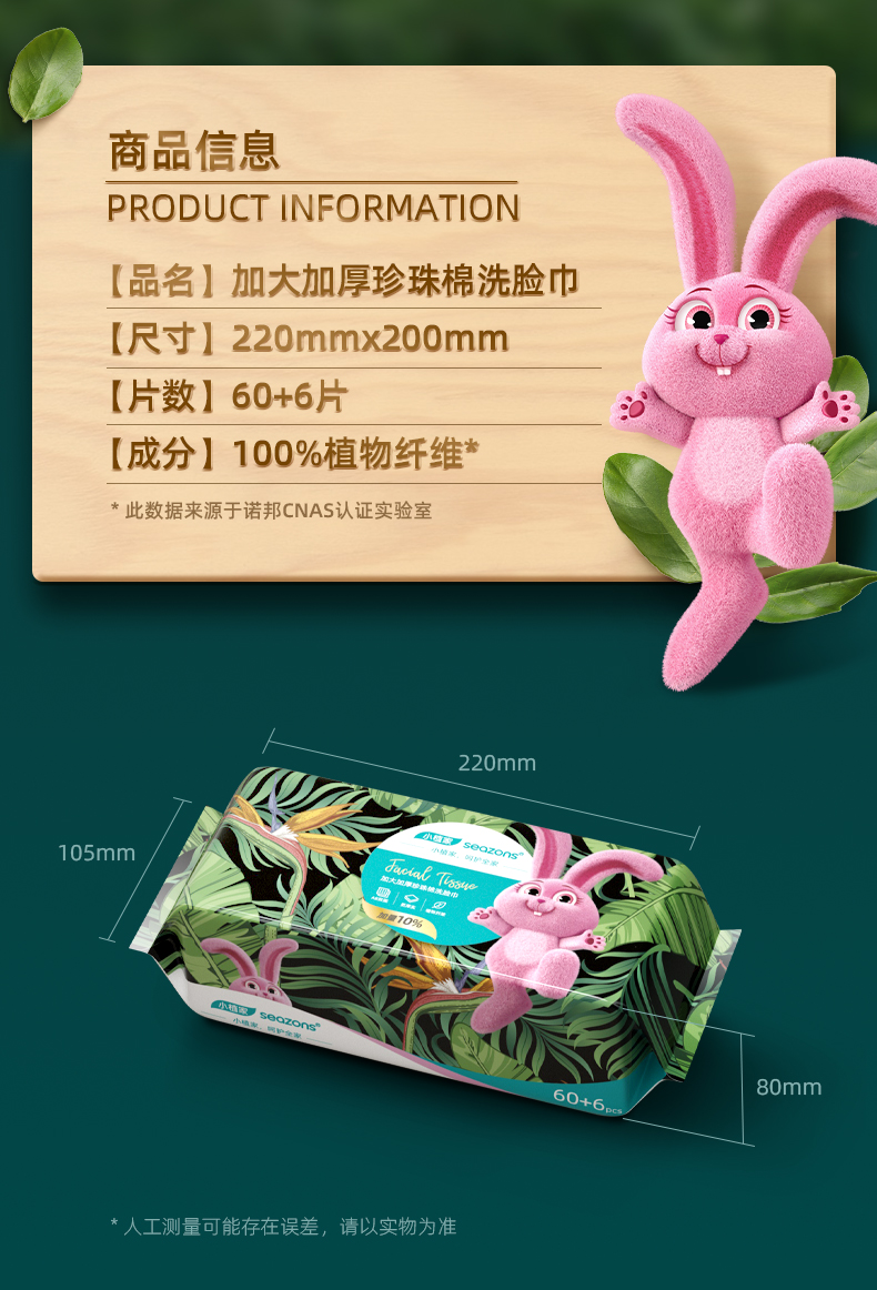 小植家加大加厚珍珠棉洗脸巾22*20cm*66片