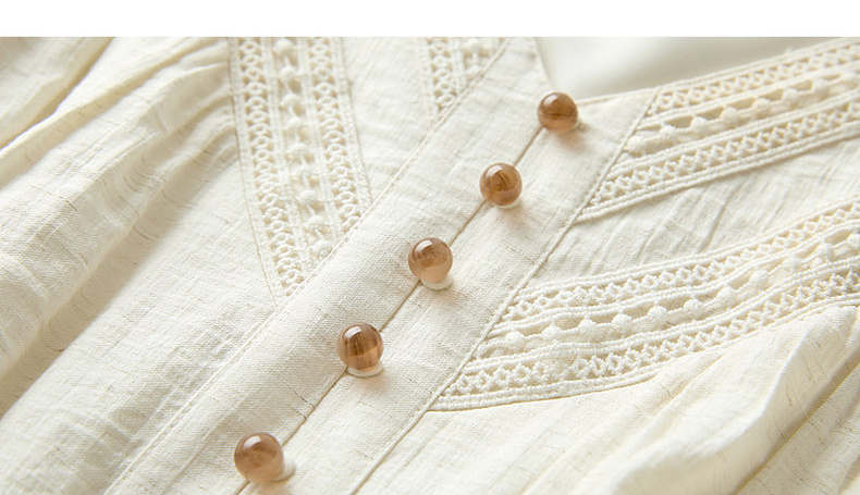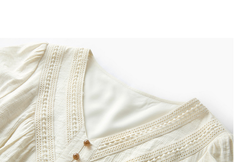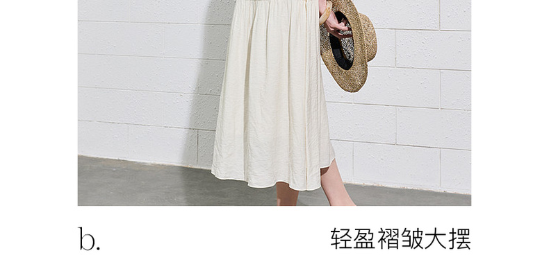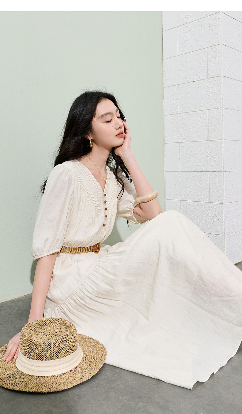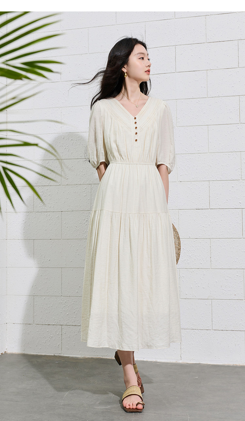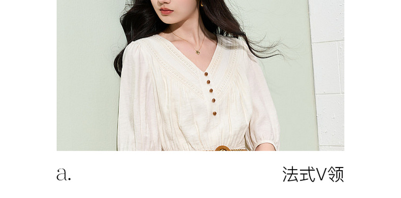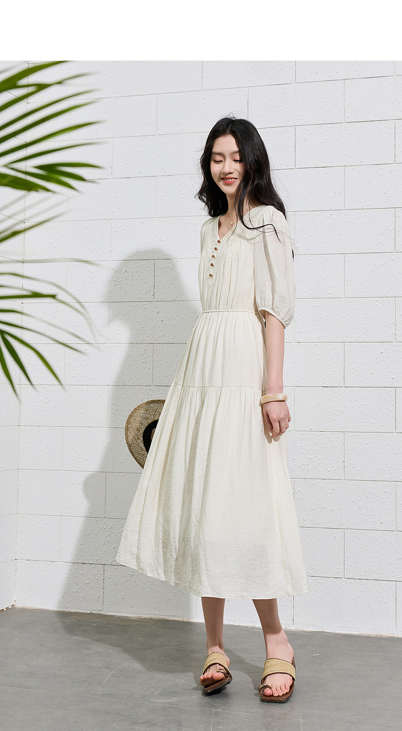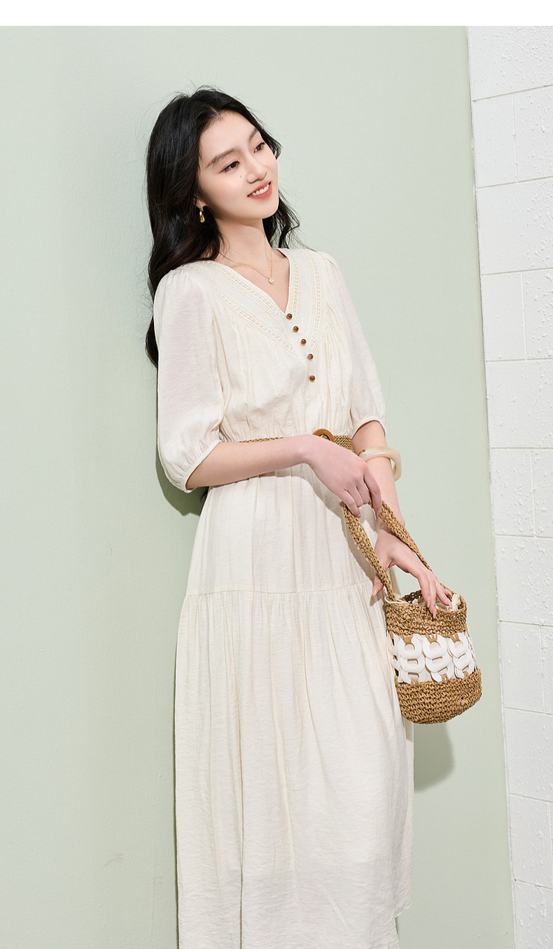 三彩2026夏季新款法式V领高腰中袖A字裙连衣裙大摆长裙简约S