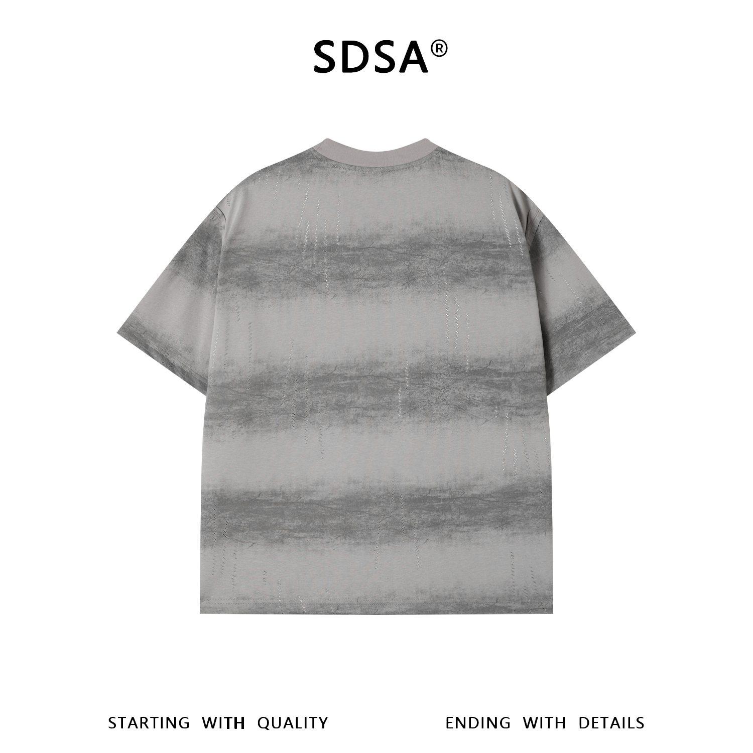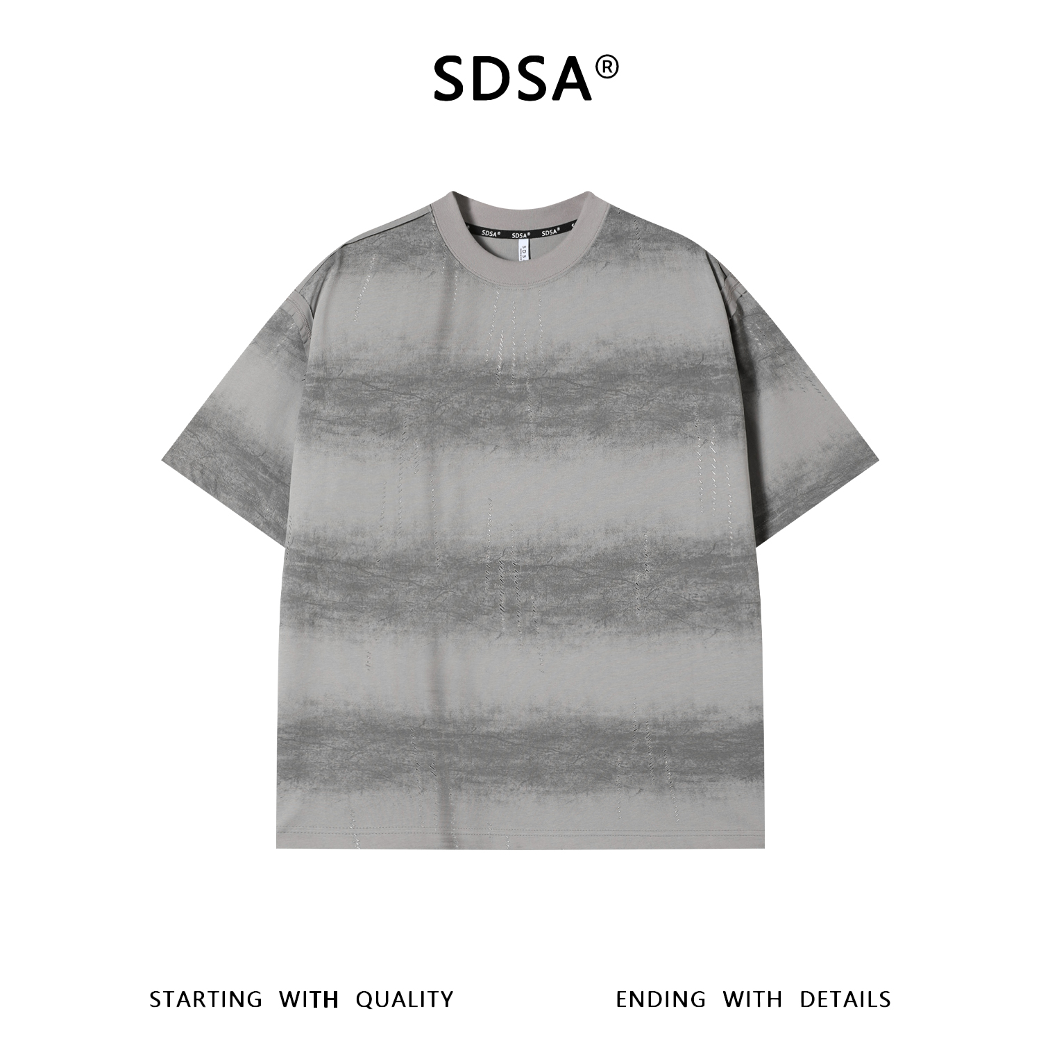 SDSA男装2026新款高贵轻奢韩系扎染条纹滴胶设计圆领短袖T恤百搭