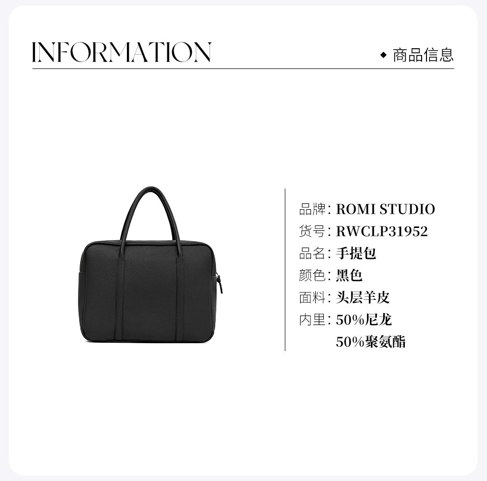 ROMI STUDIO“简约复古”全粒面头层羊皮黑色方形手提包 RWCLP31952【发货时间25-30天】